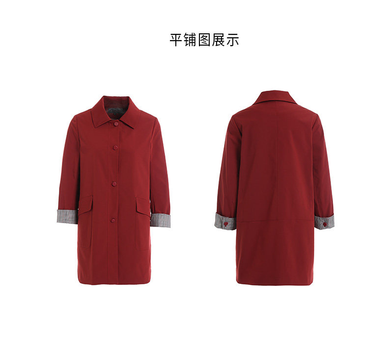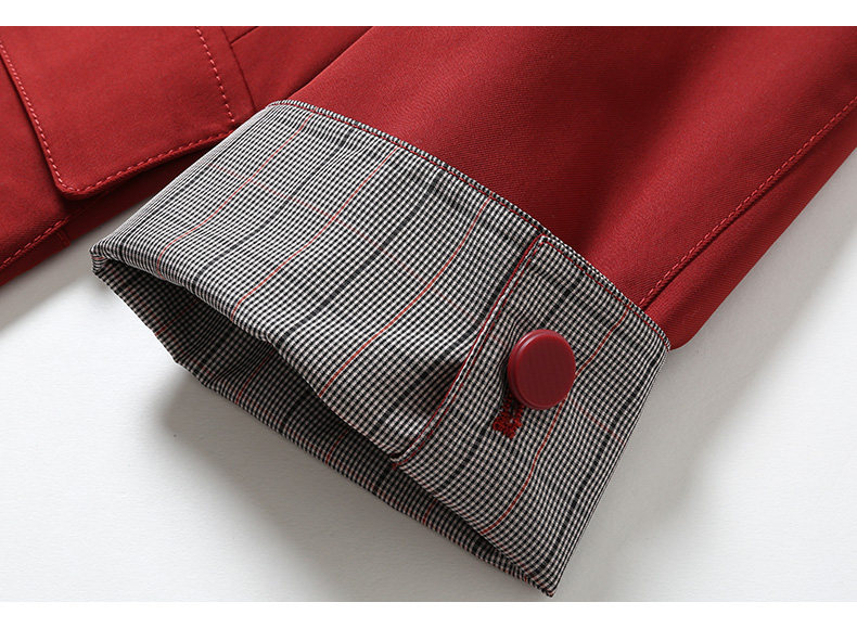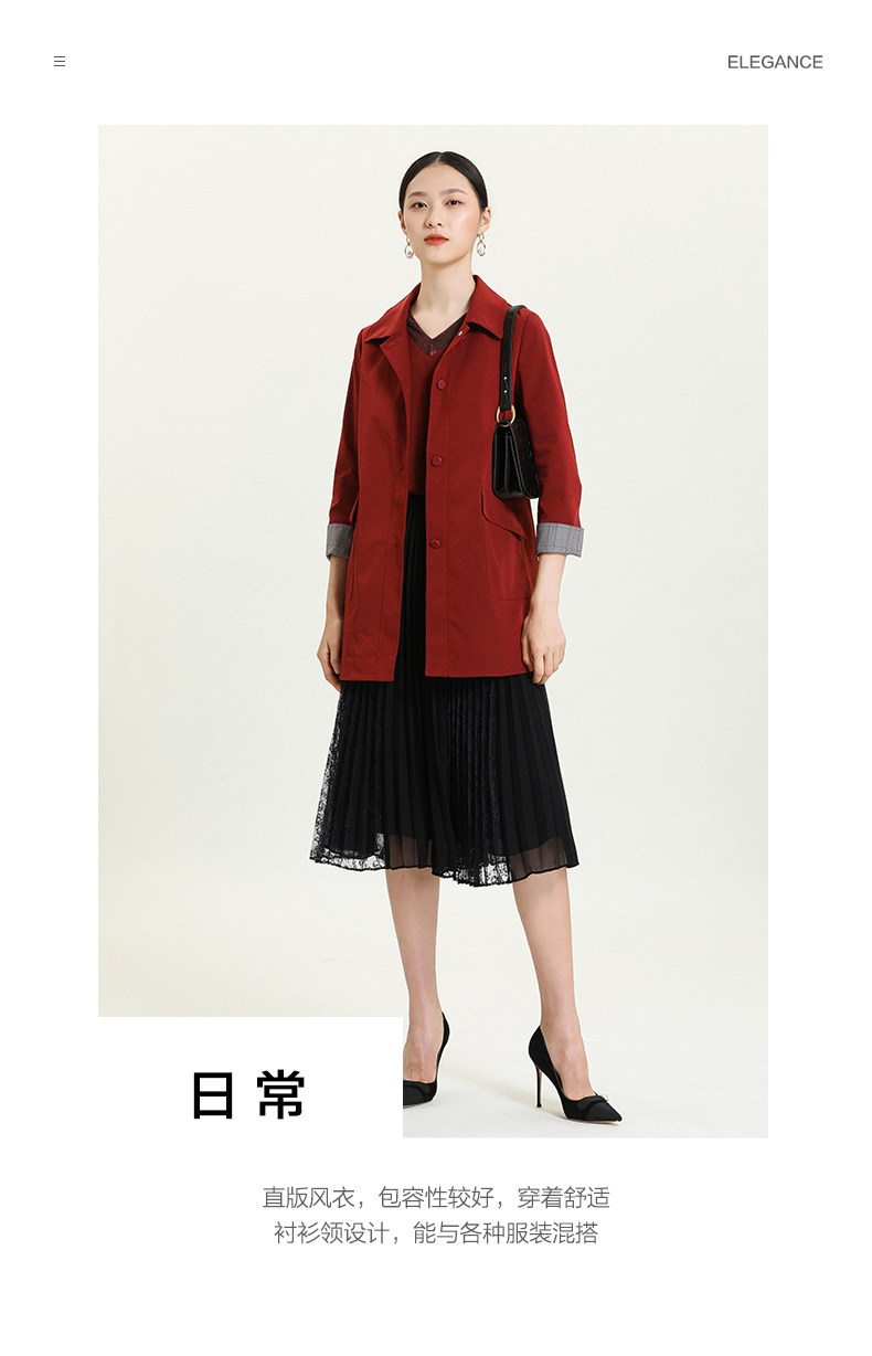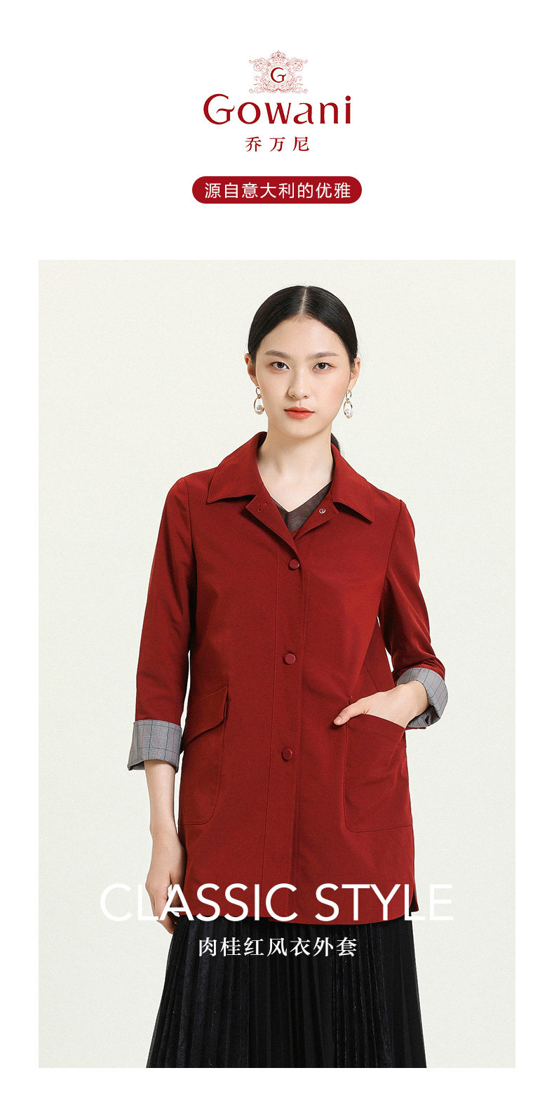 乔万尼新款红色风衣拼接色H版型遮肉显瘦气质时尚外套ES3A569