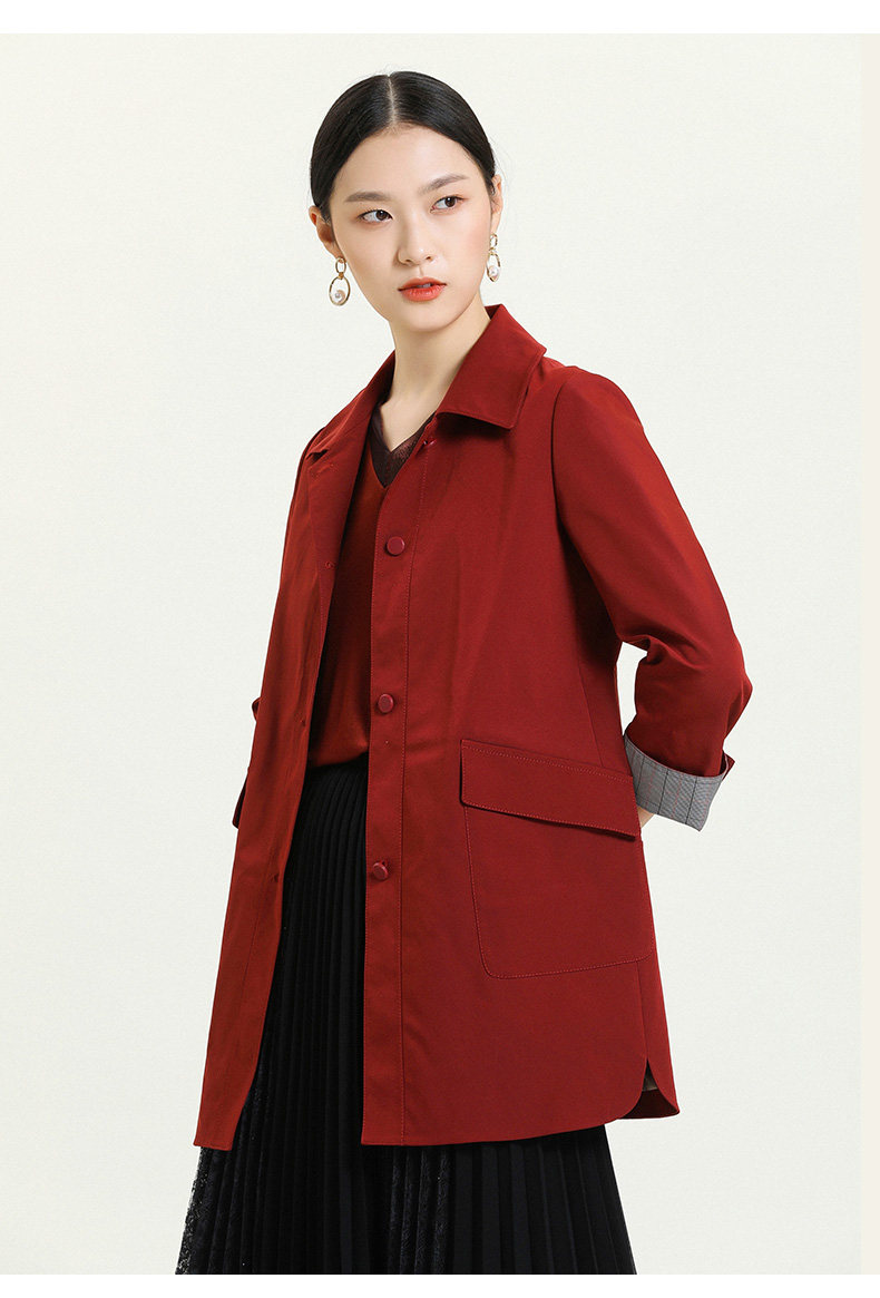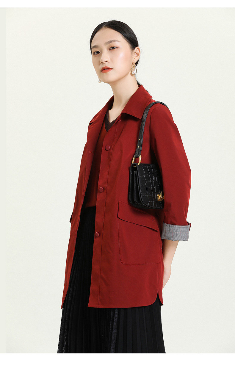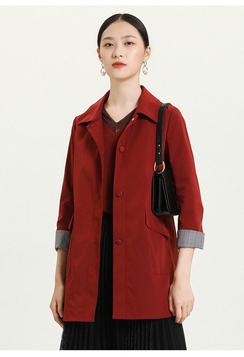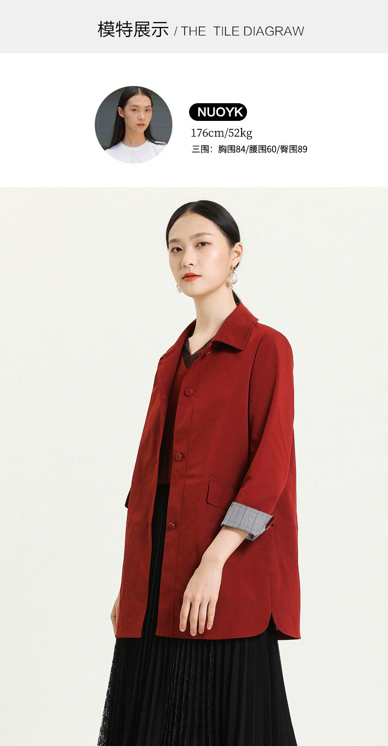 乔万尼新款红色风衣拼接色H版型遮肉显瘦气质时尚外套ES3A569