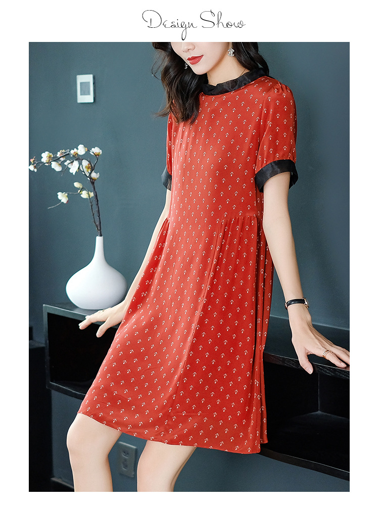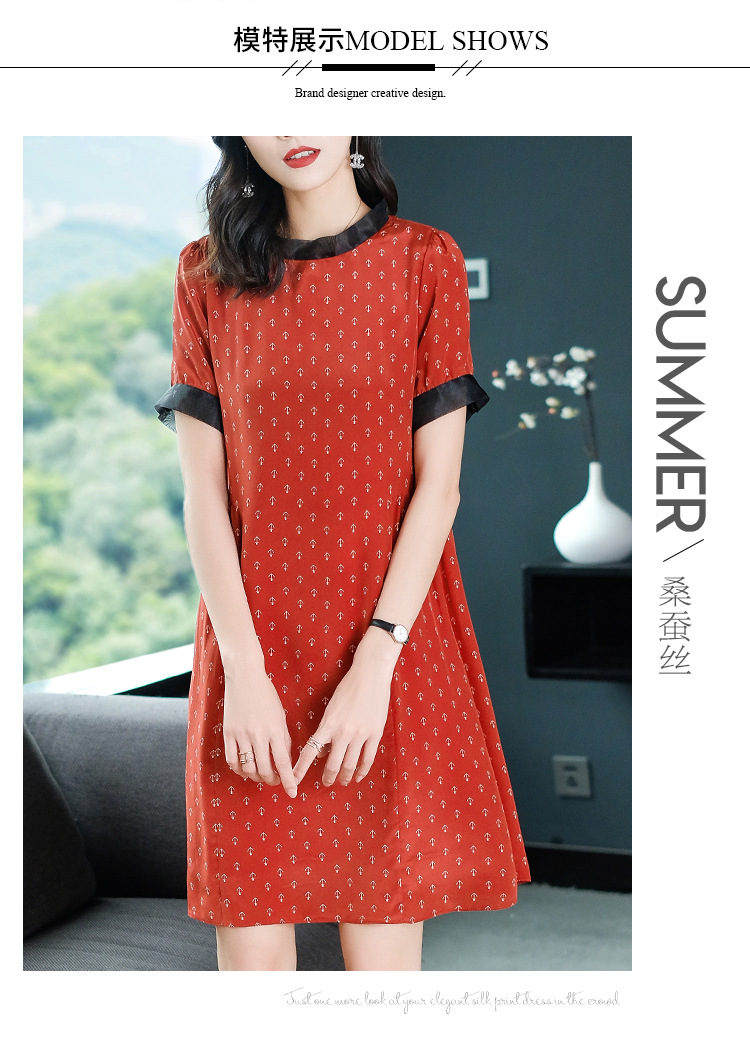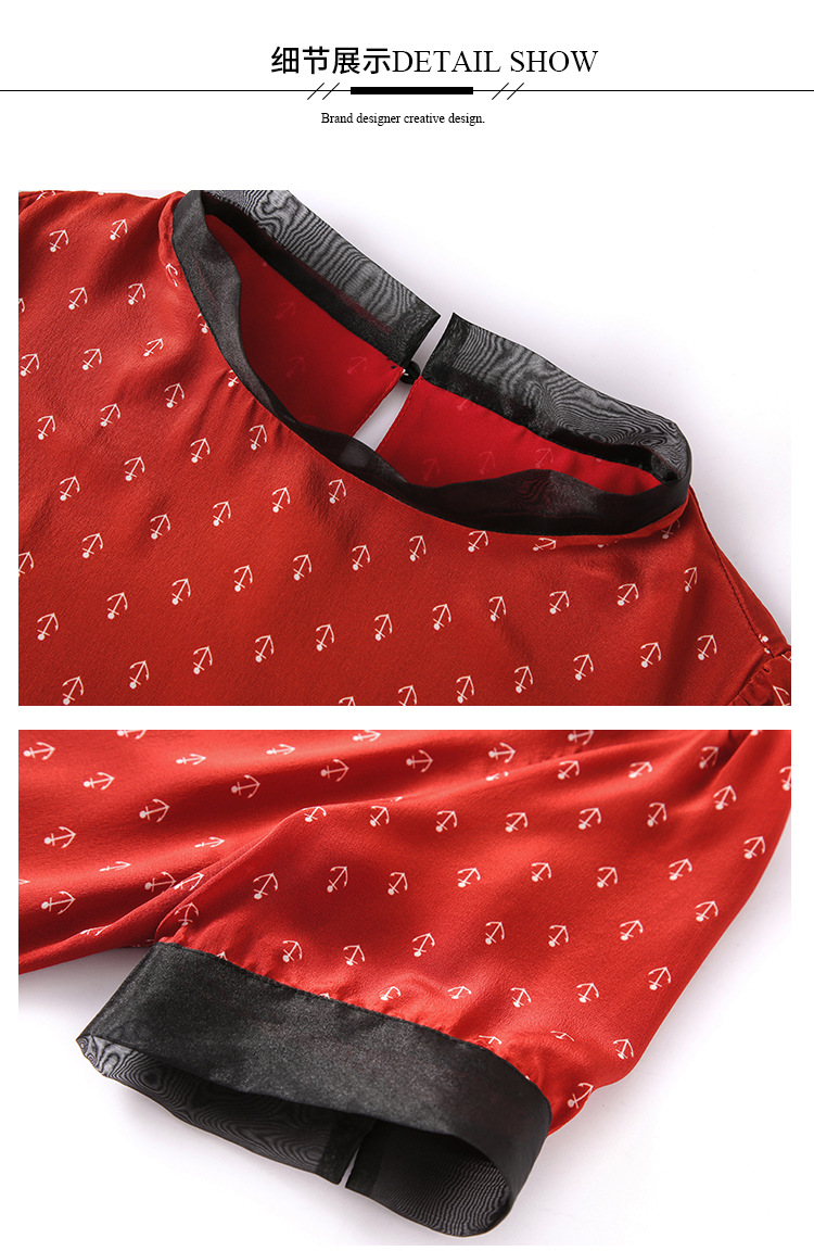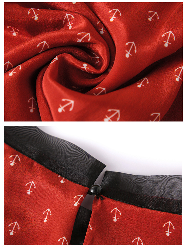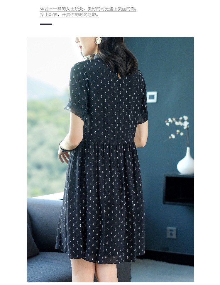 CS-19319夏新品加比勒船锚印花黑色真丝欧根纱显瘦连衣裙