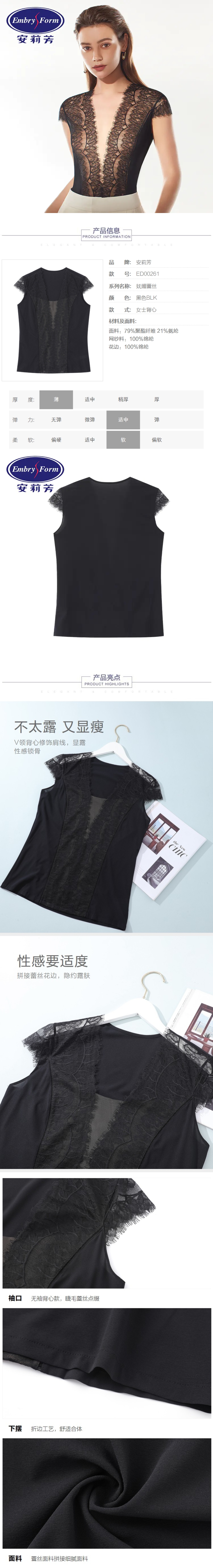 安莉芳夏季薄款蕾丝无袖背心女士性感通透深V打底上衣ED00261