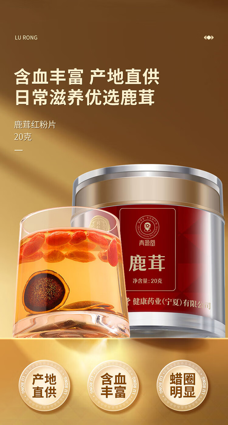 【正宗同仁堂品牌】北京同仁堂 青源堂 鹿茸片20克 主角切片 蜂孔细密 蜡圈分明SY