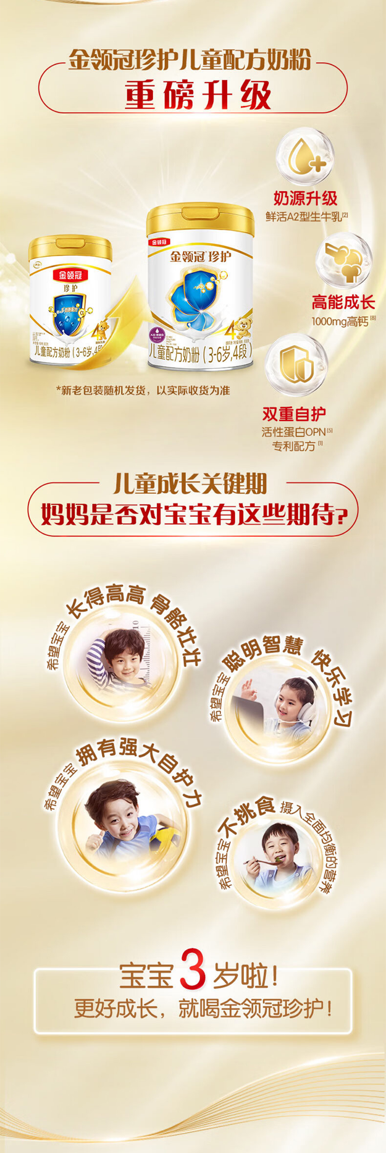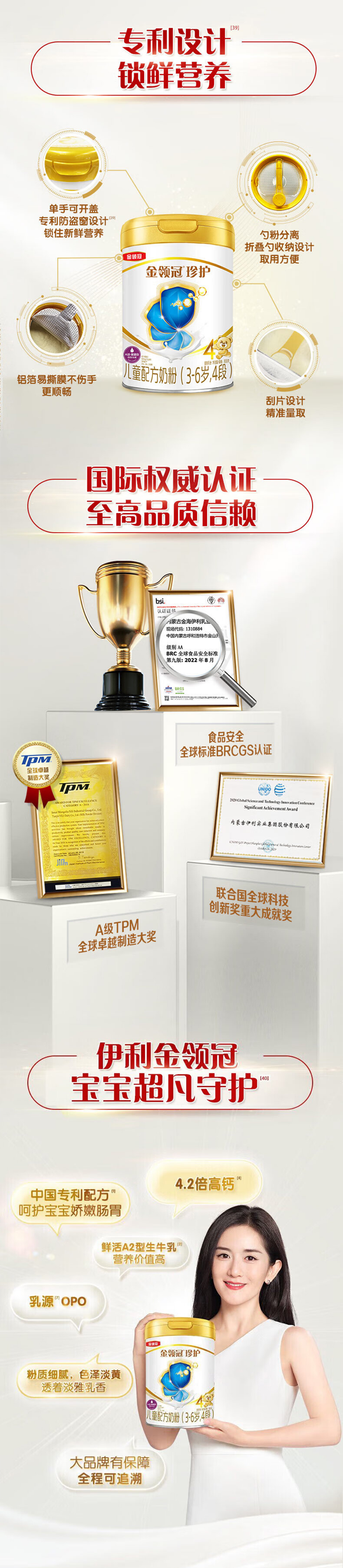 【新国标】伊利金领冠珍护4段儿童配方奶粉800g