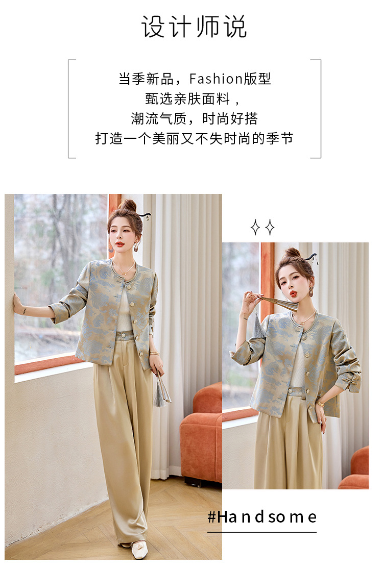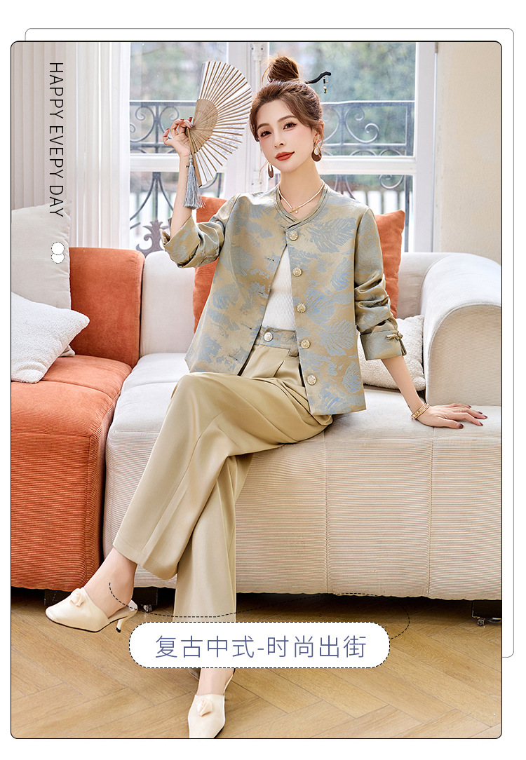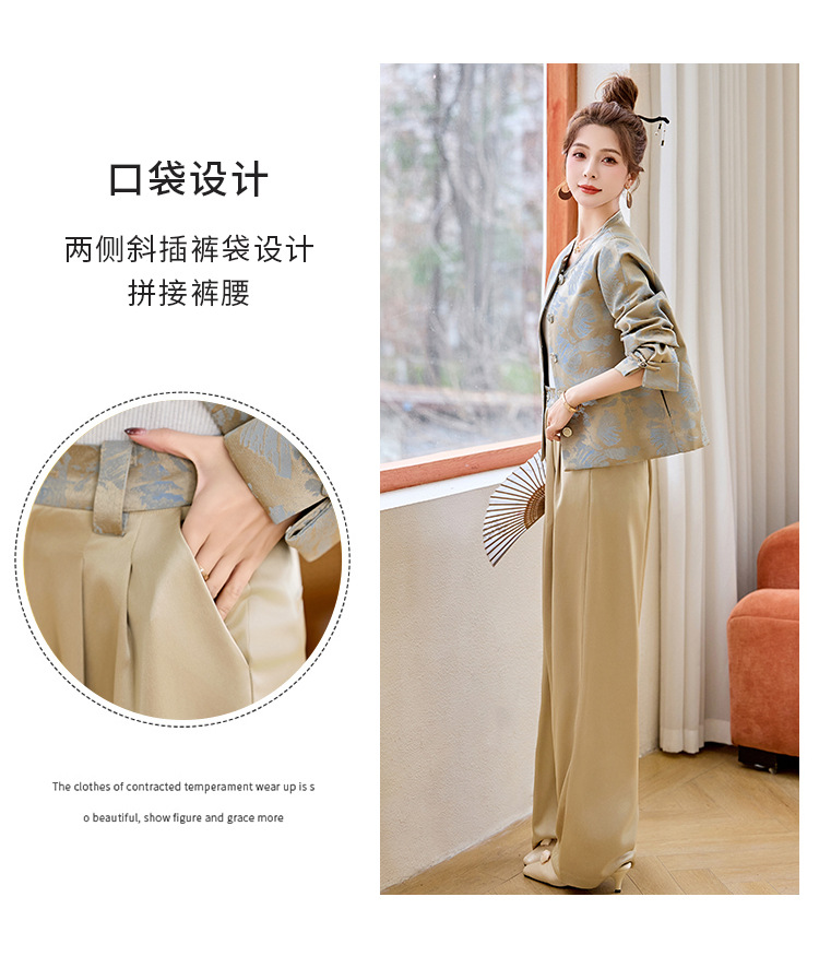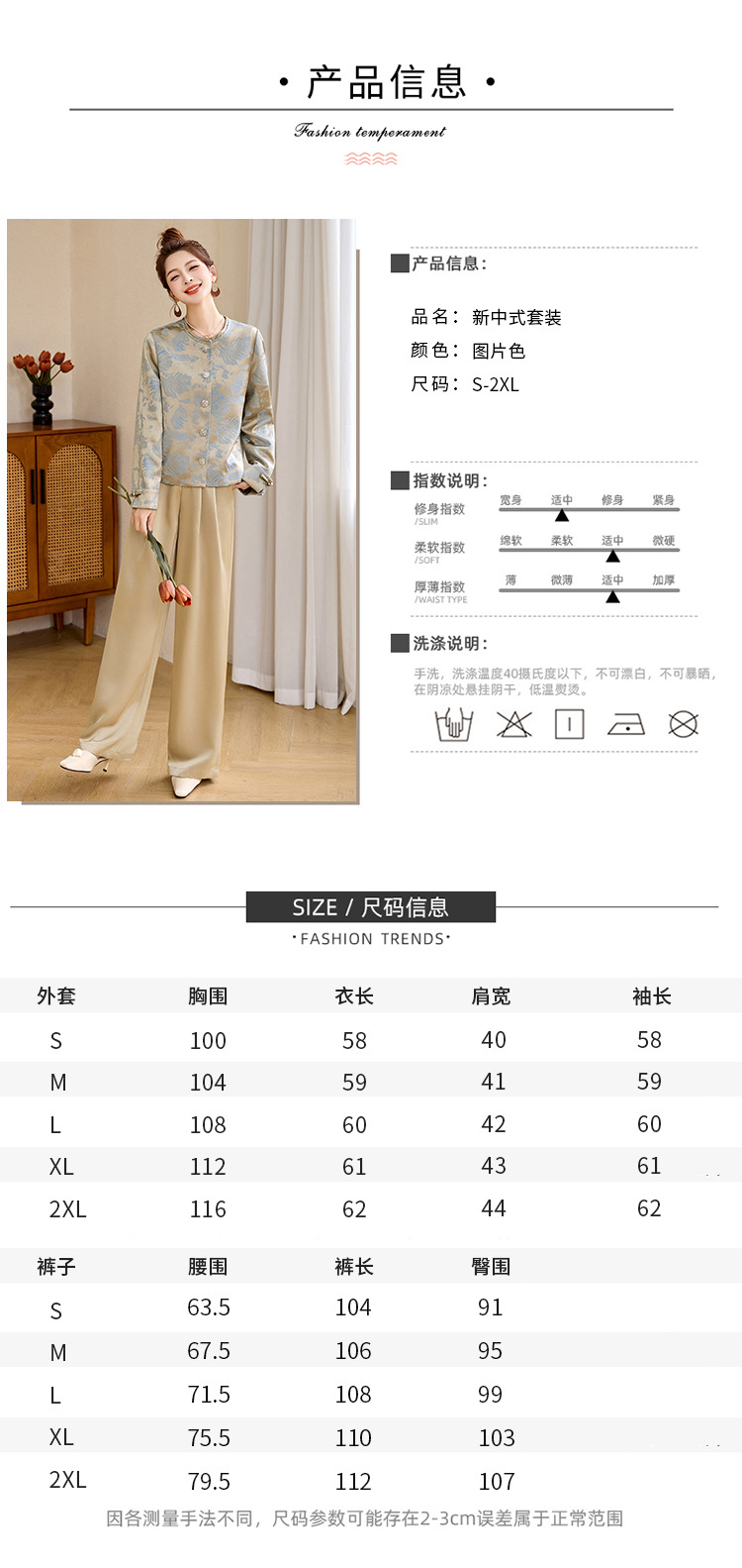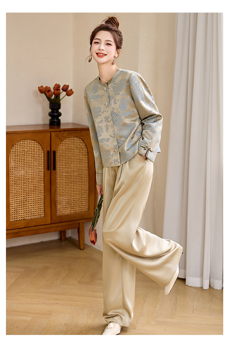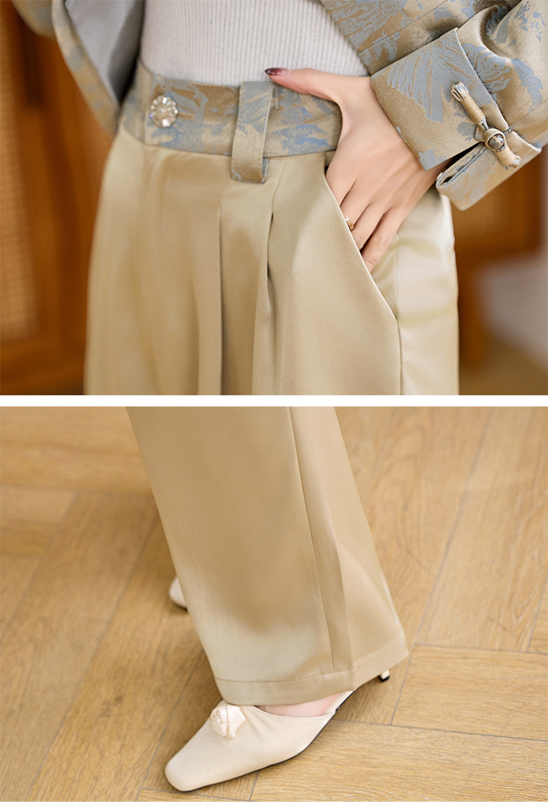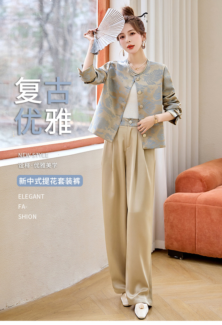 丁摩风气质套装女2026春季新款时尚贵气高腰缎面新中式两件套裤6ZF-6252