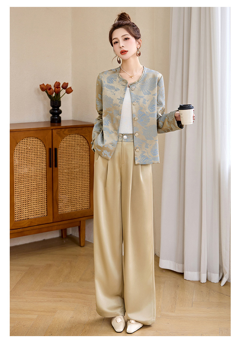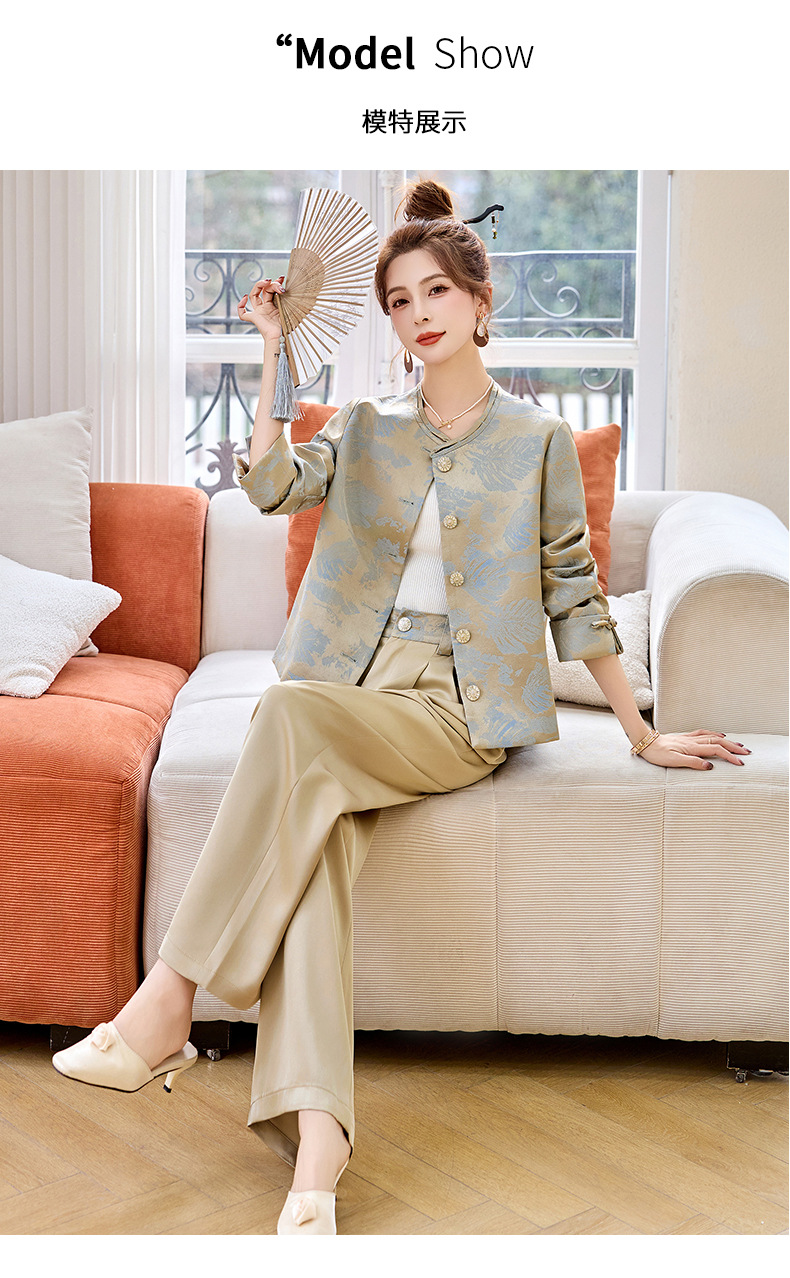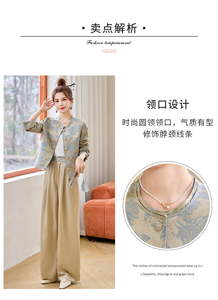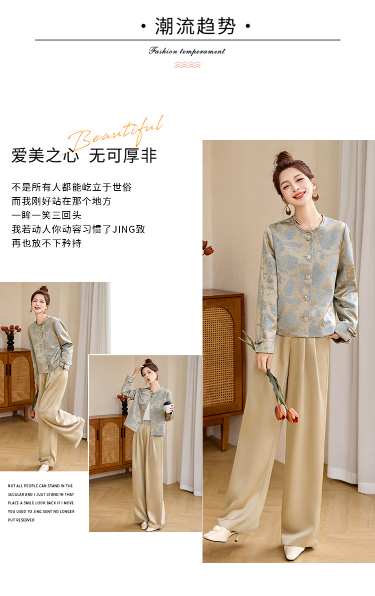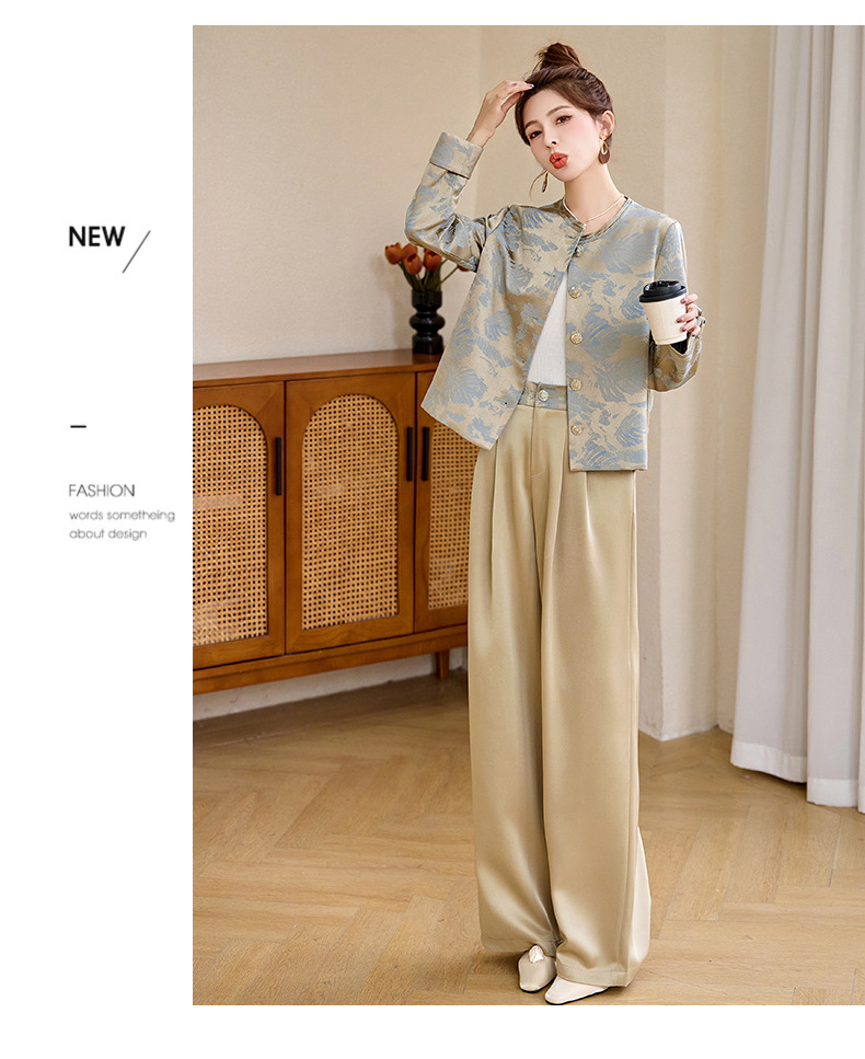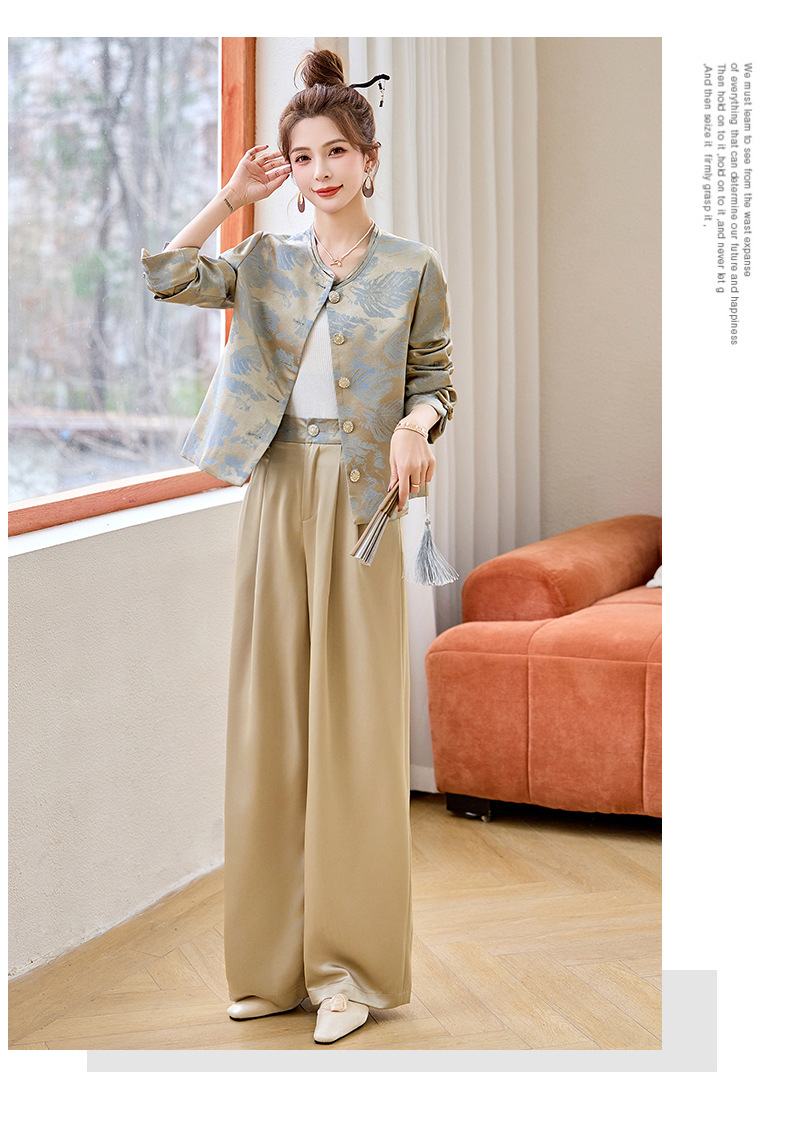 丁摩风气质套装女2026春季新款时尚贵气高腰缎面新中式两件套裤6ZF-6252
