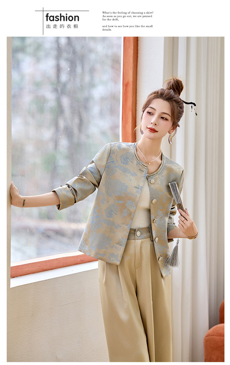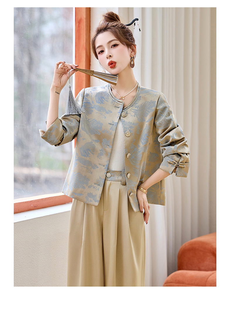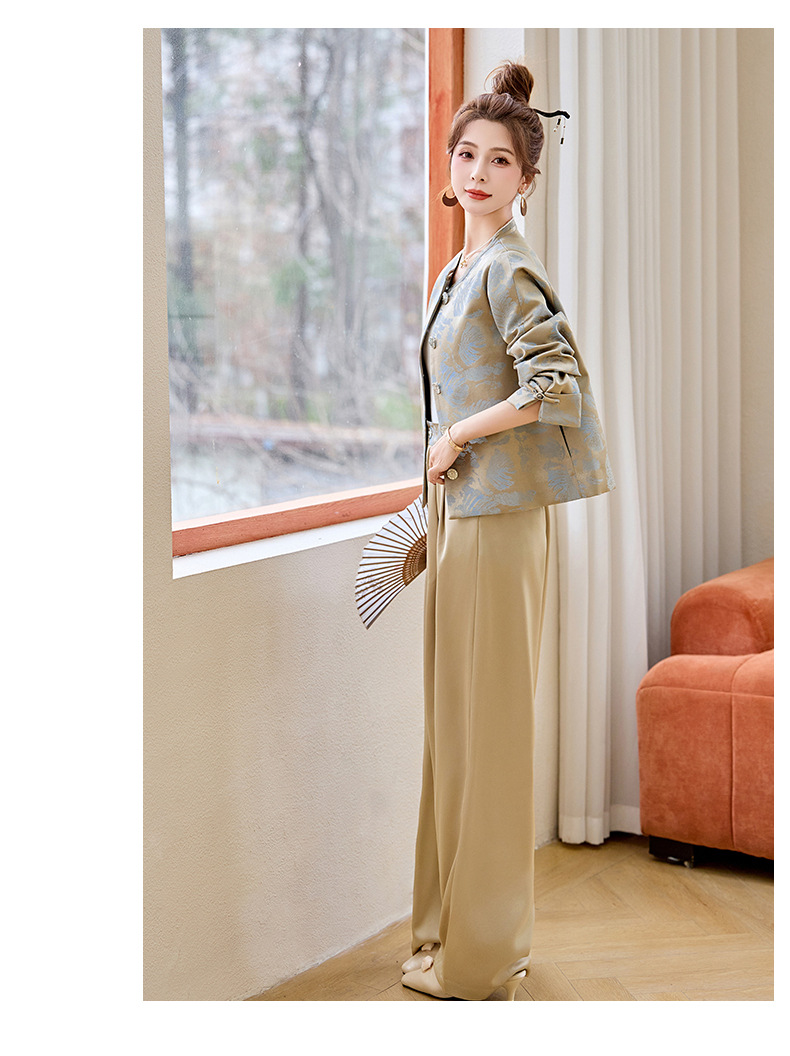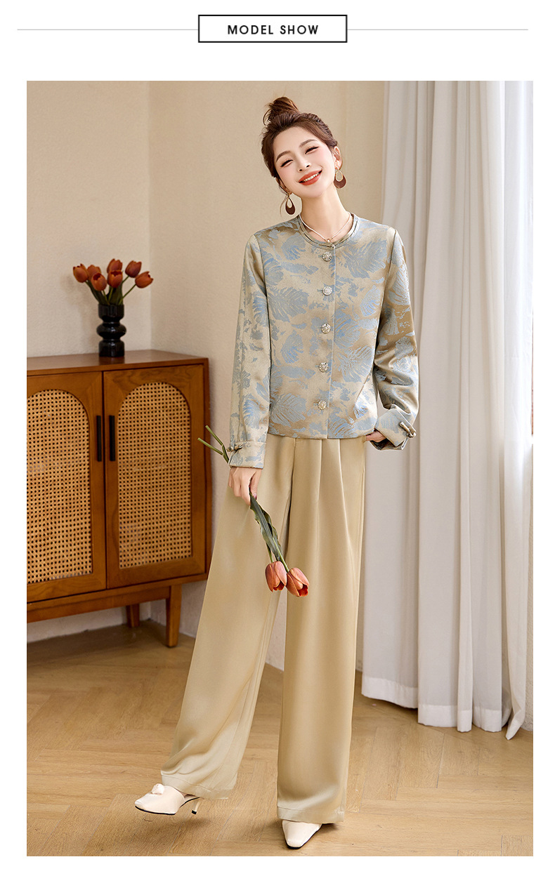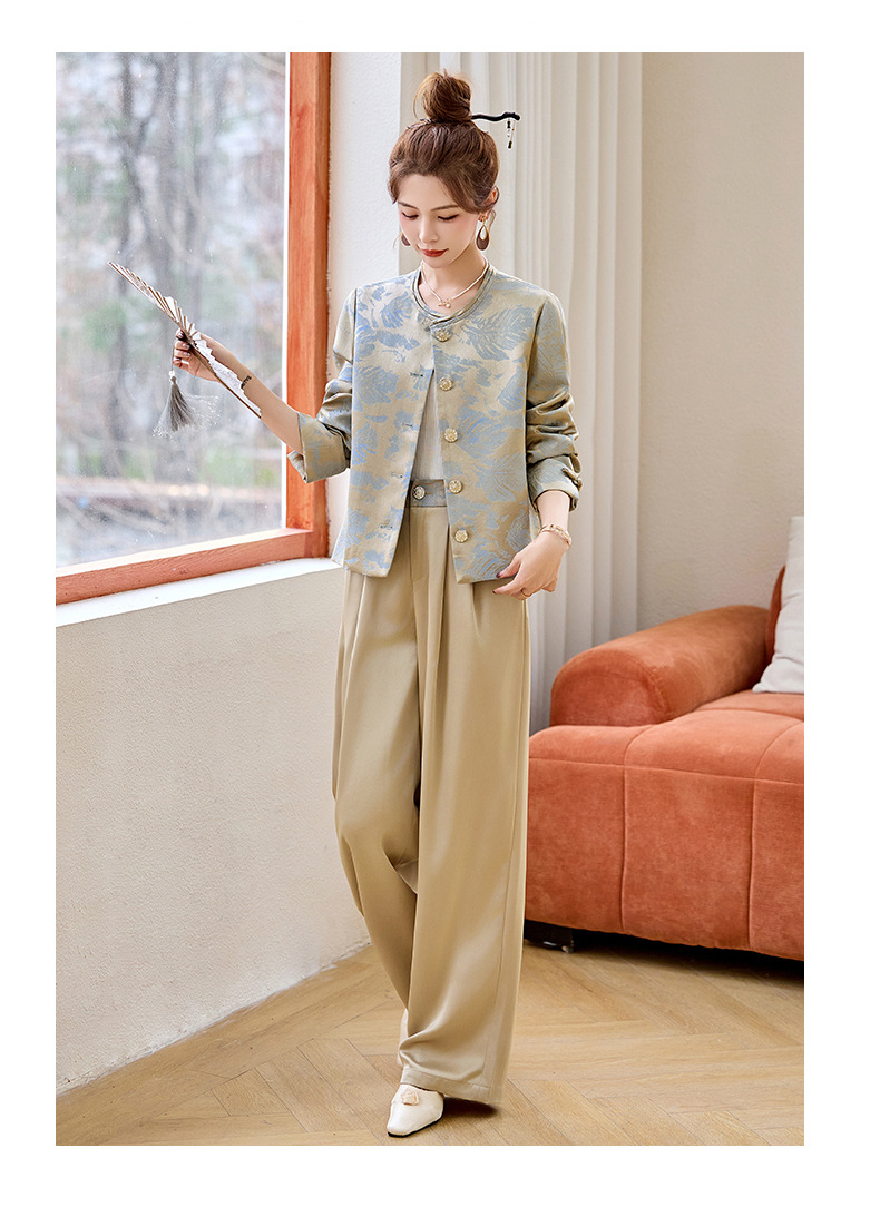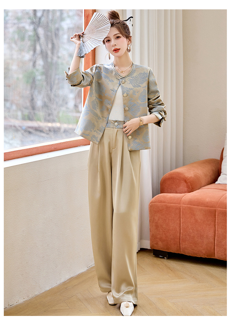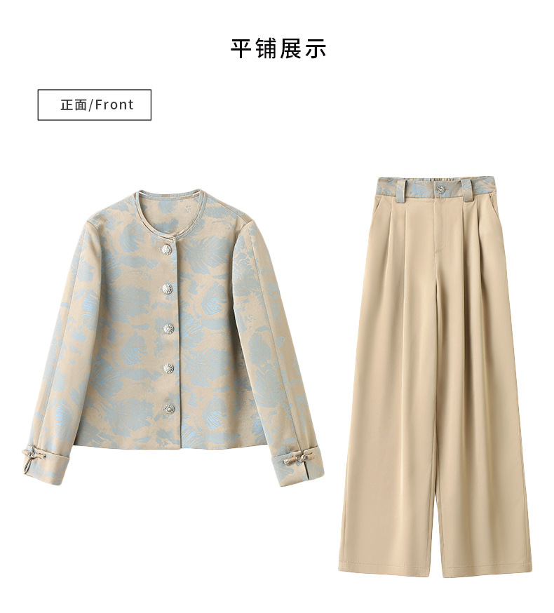 丁摩风气质套装女2026春季新款时尚贵气高腰缎面新中式两件套裤6ZF-6252