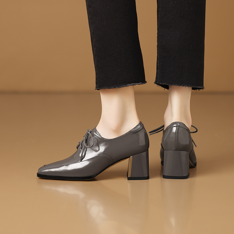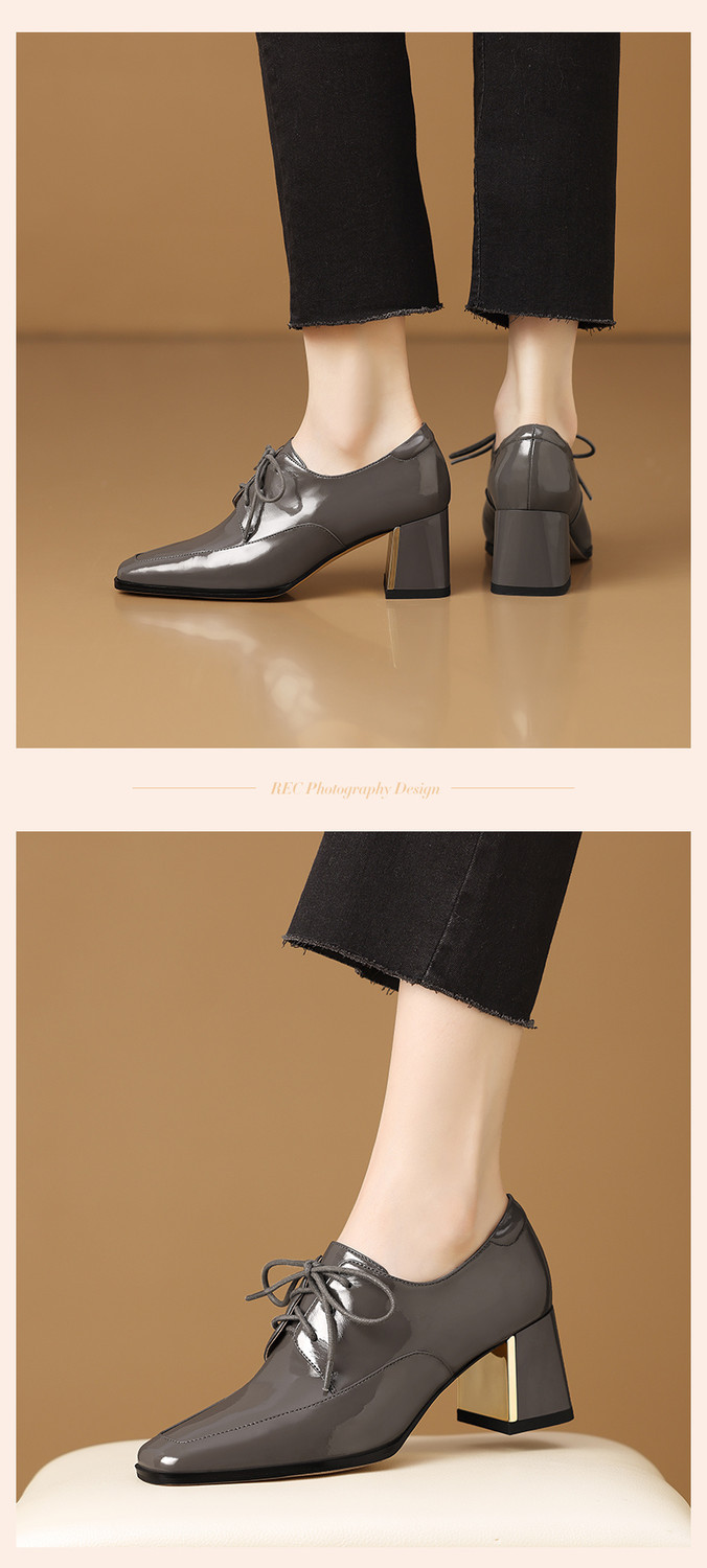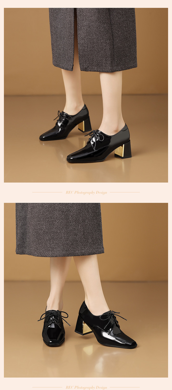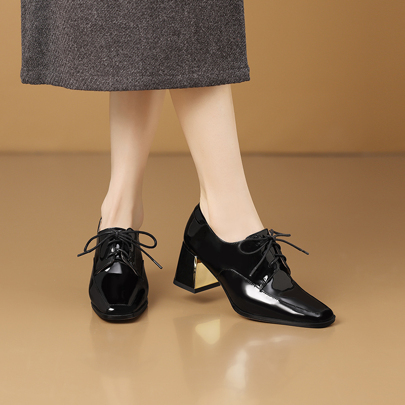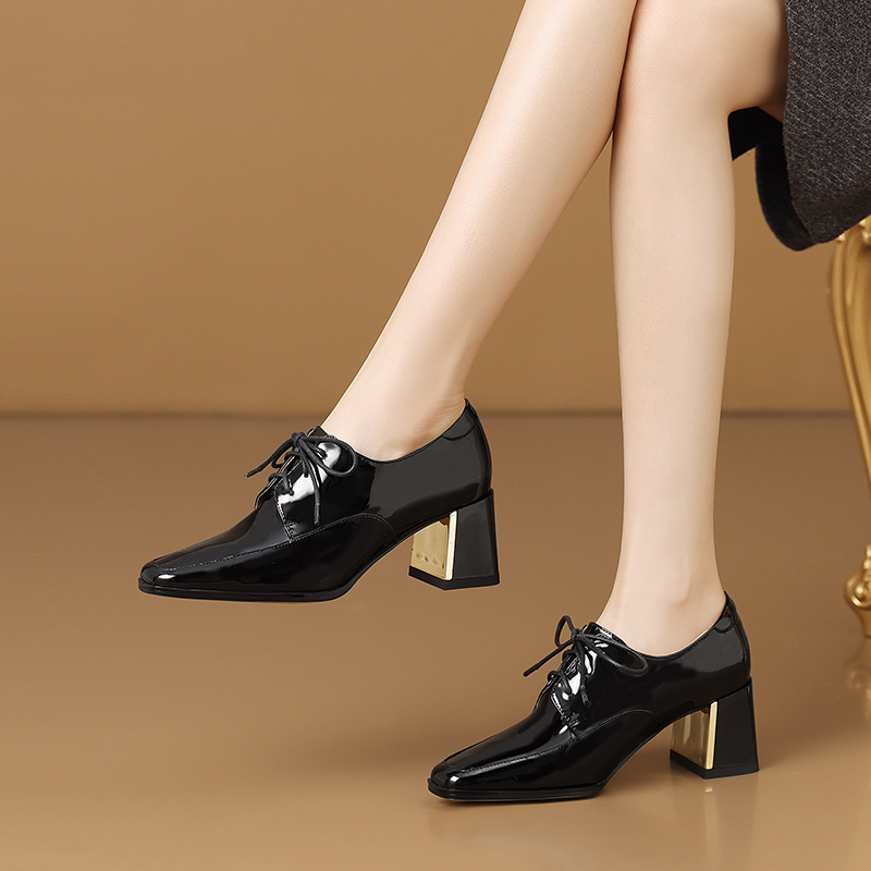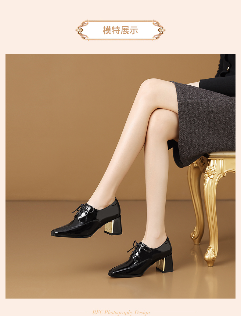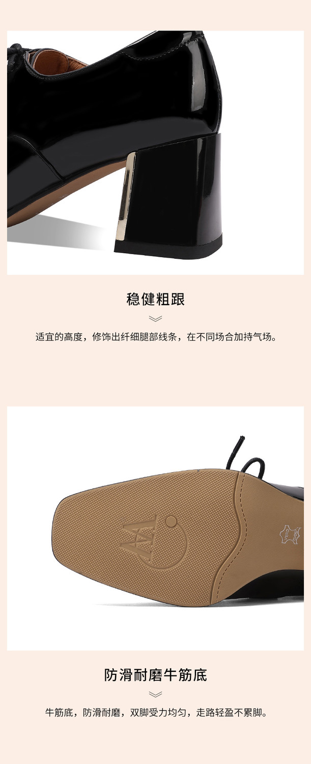 【预售5天】中跟乐福鞋深口女士单鞋女春秋季新款高跟系带真皮小皮鞋女HY&H3728