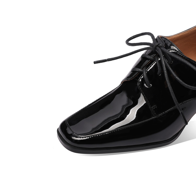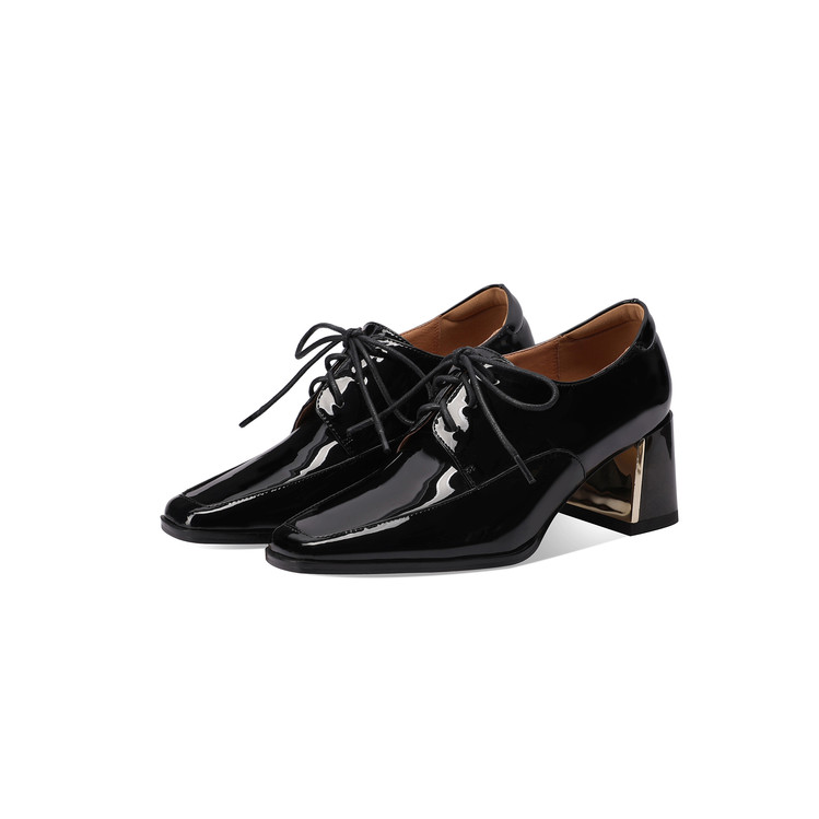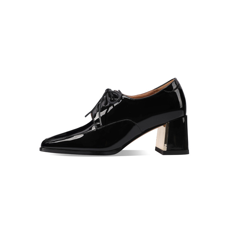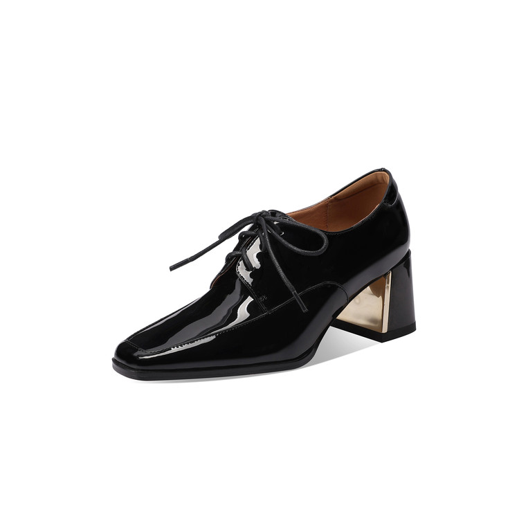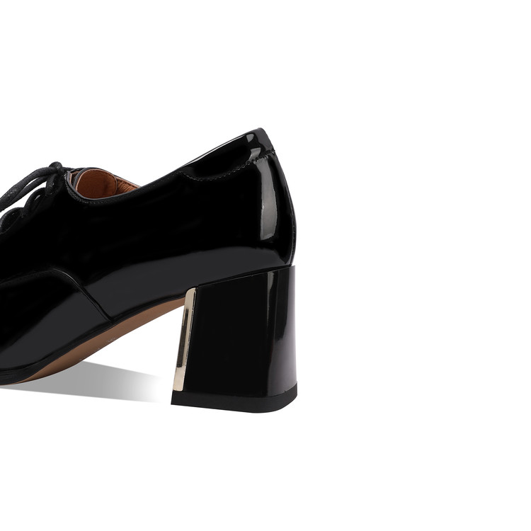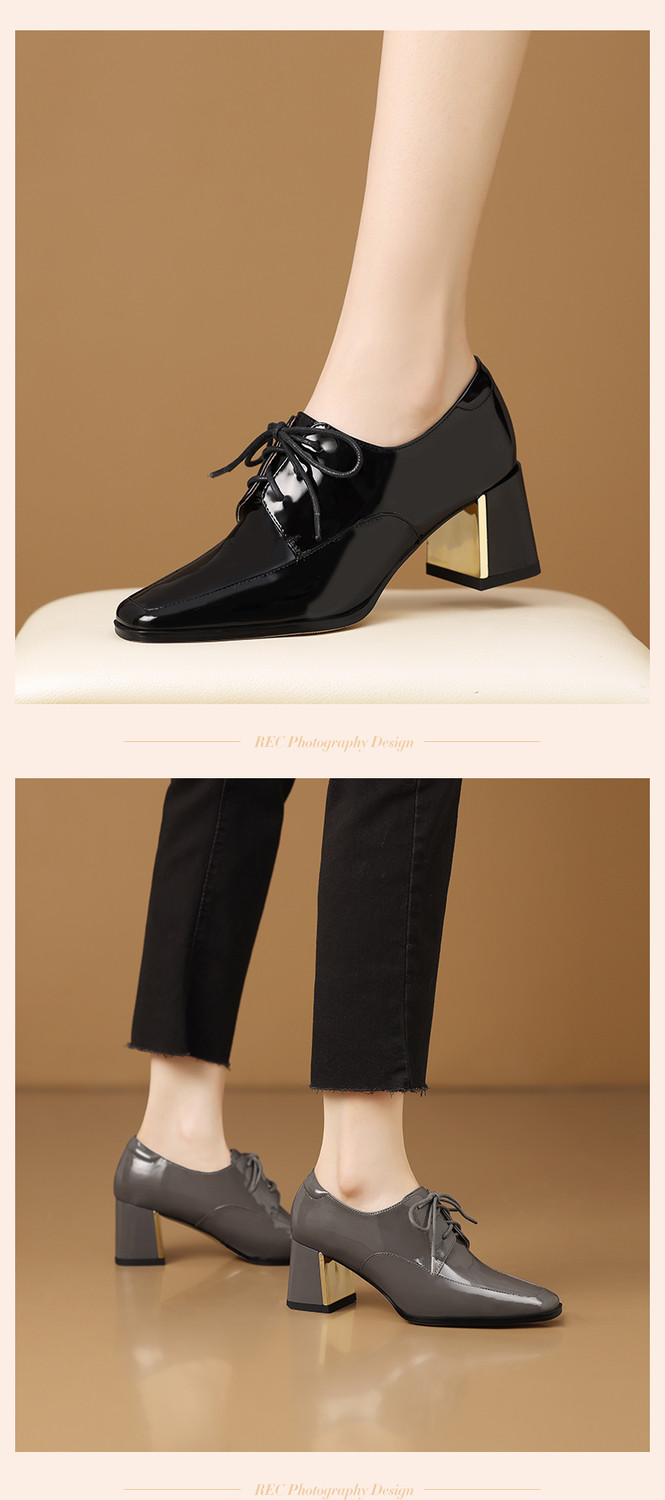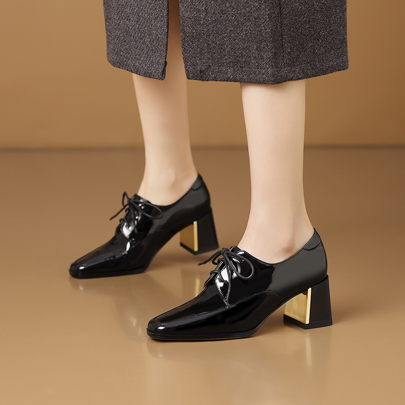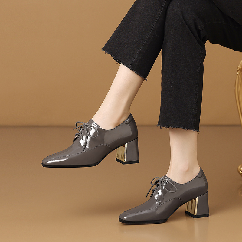 【预售5天】中跟乐福鞋深口女士单鞋女春秋季新款高跟系带真皮小皮鞋女HY&H3728