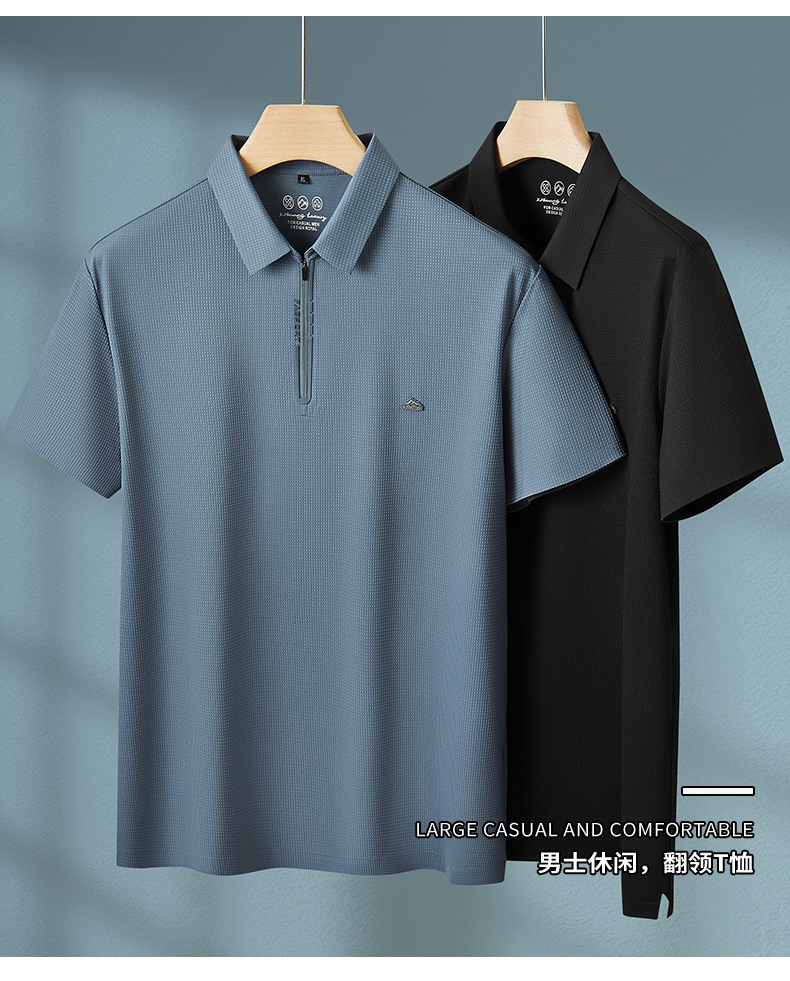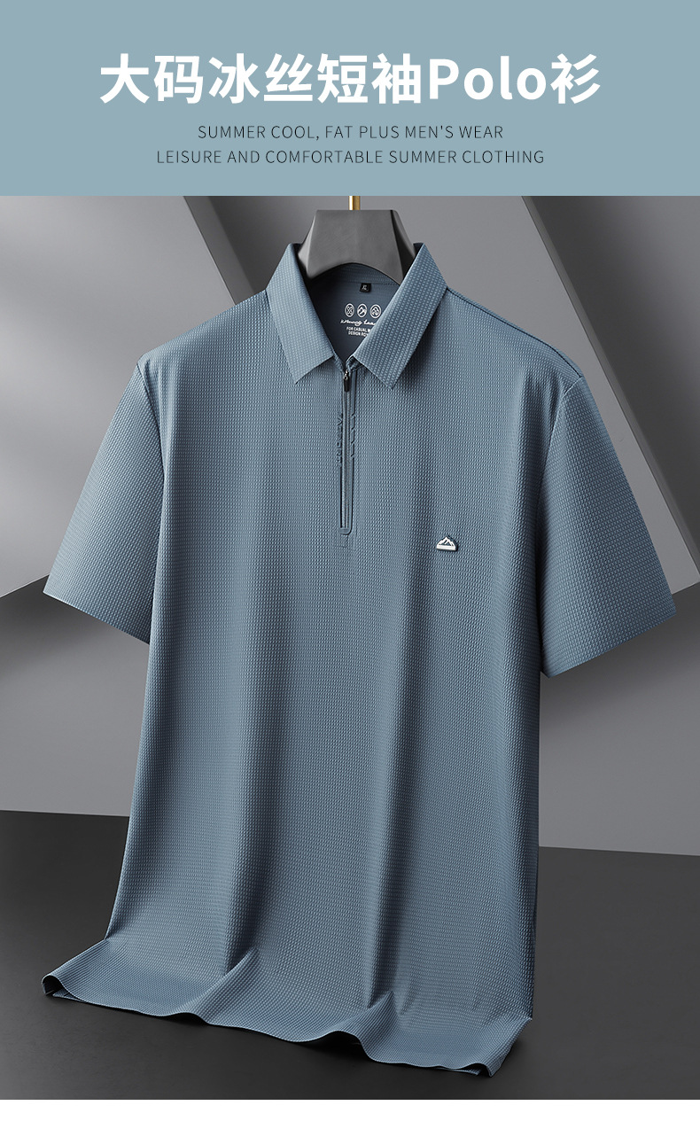 【拉链款】【DPF】大依优型大码短袖POLO衫半拉链领冰丝半袖体恤男加肥大号衣服肥佬运动休闲