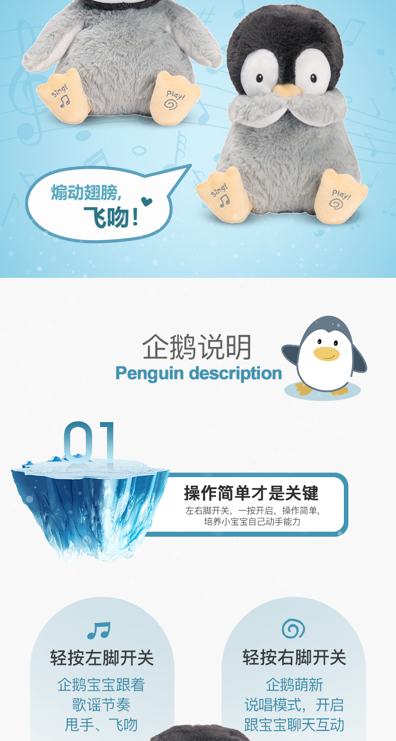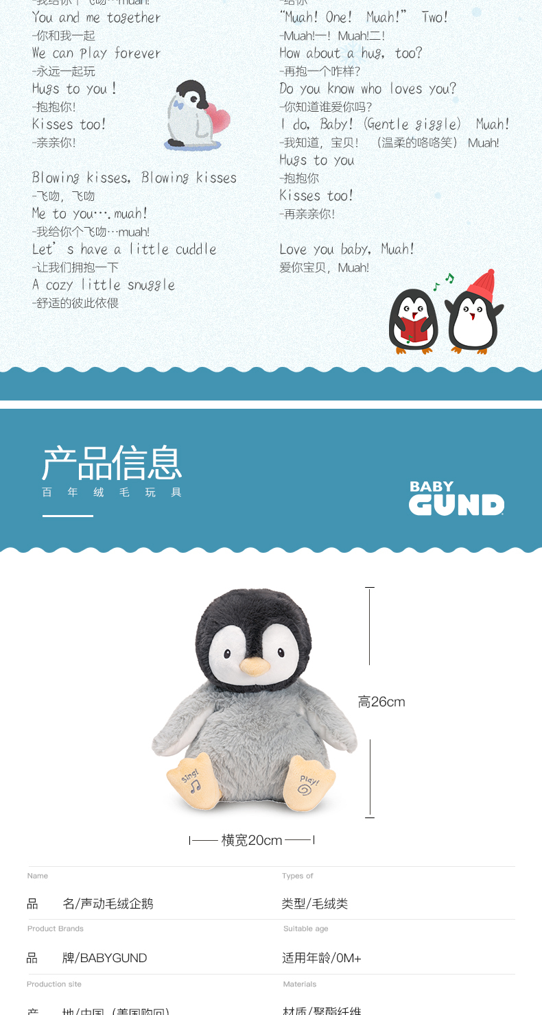 BabyGund飞吻企鹅薇琪婴儿毛绒玩具超萌可爱音乐公仔
