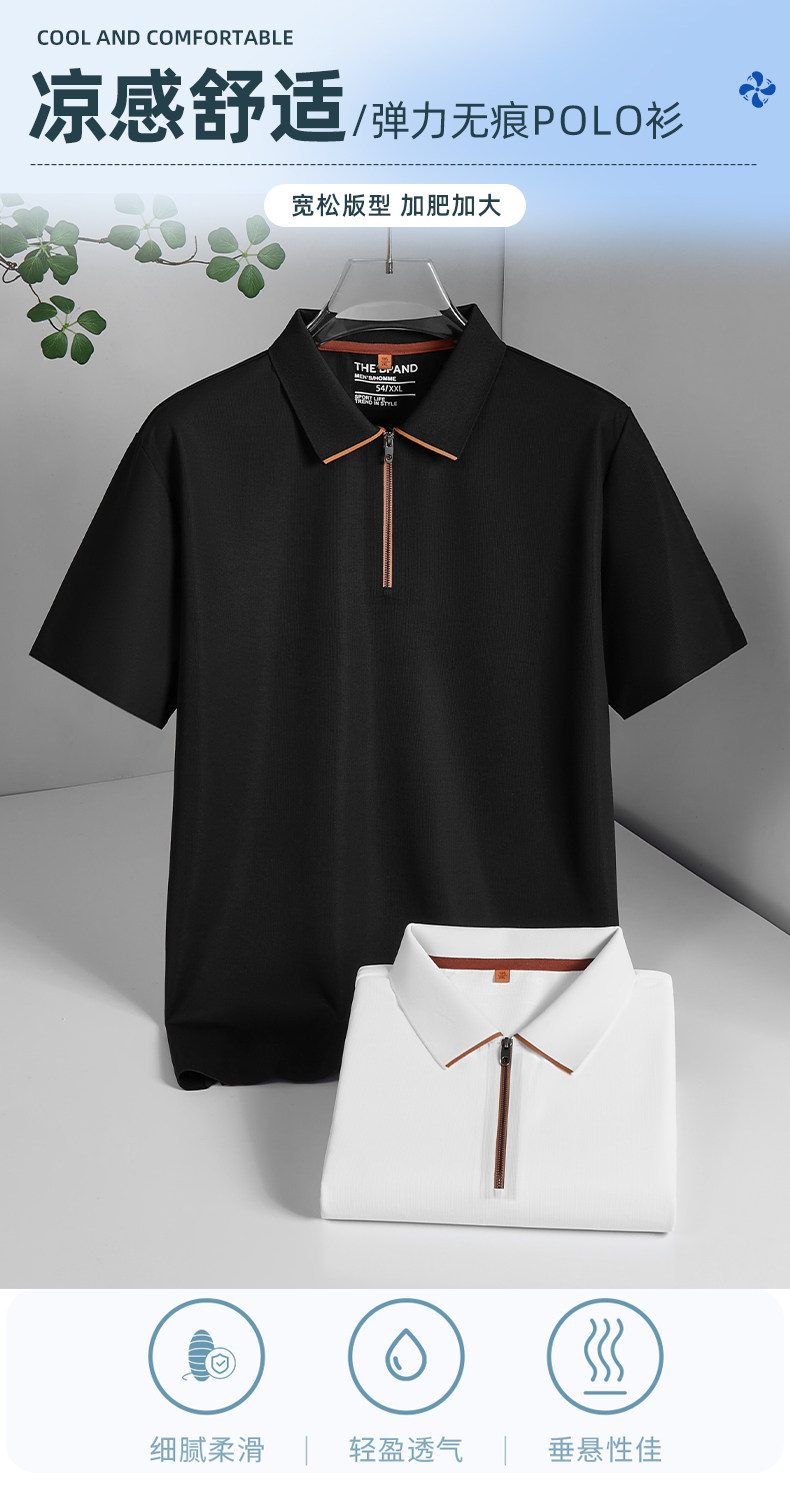 【DWP】大依优型大码半拉链短袖POLO衫透气商务休闲翻领T恤男士上衣半袖