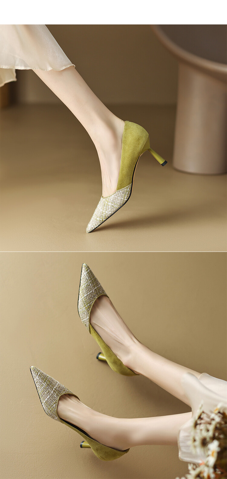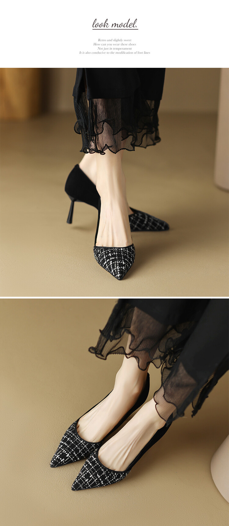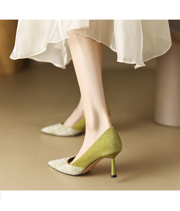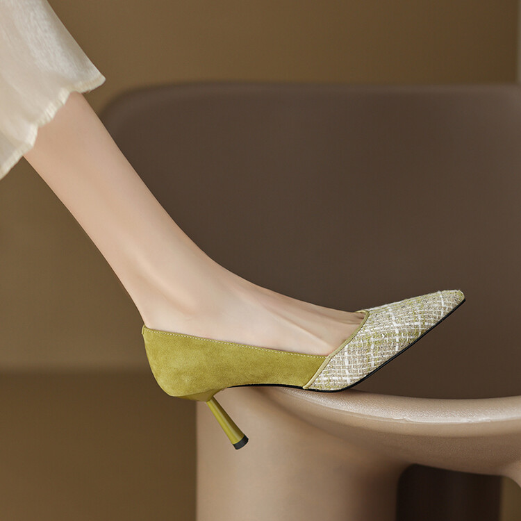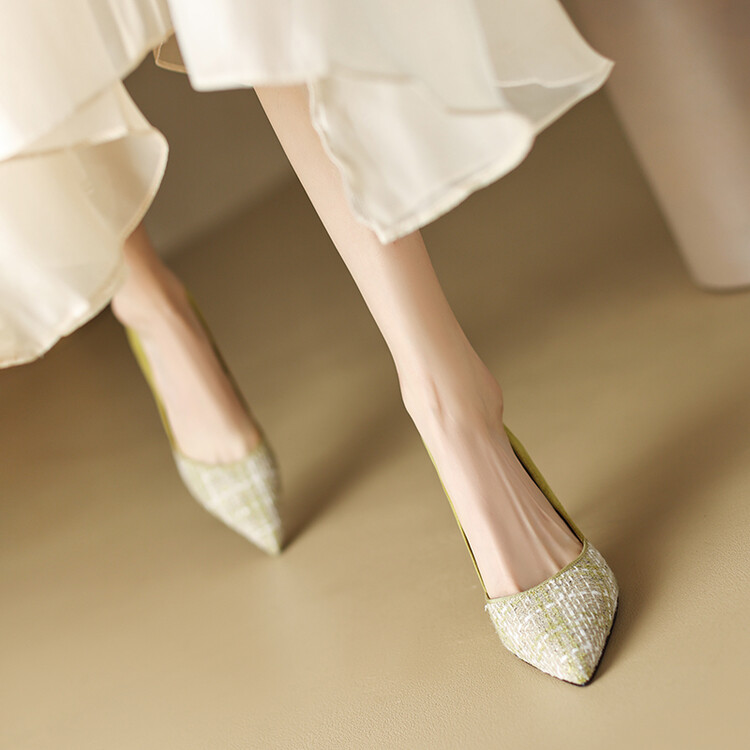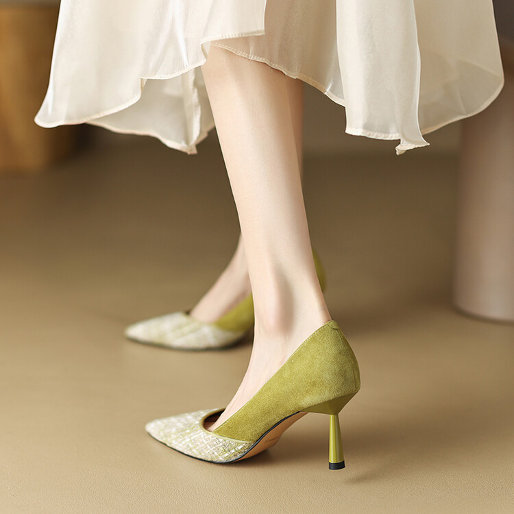 帮面材质:格子布/羊京内里材质:猪皮里鞋垫材质:羊皮垫鞋底材质:牛津大底颜色:黑色 绿色跟高:7CM尺码: 34 35 36 37 38 39