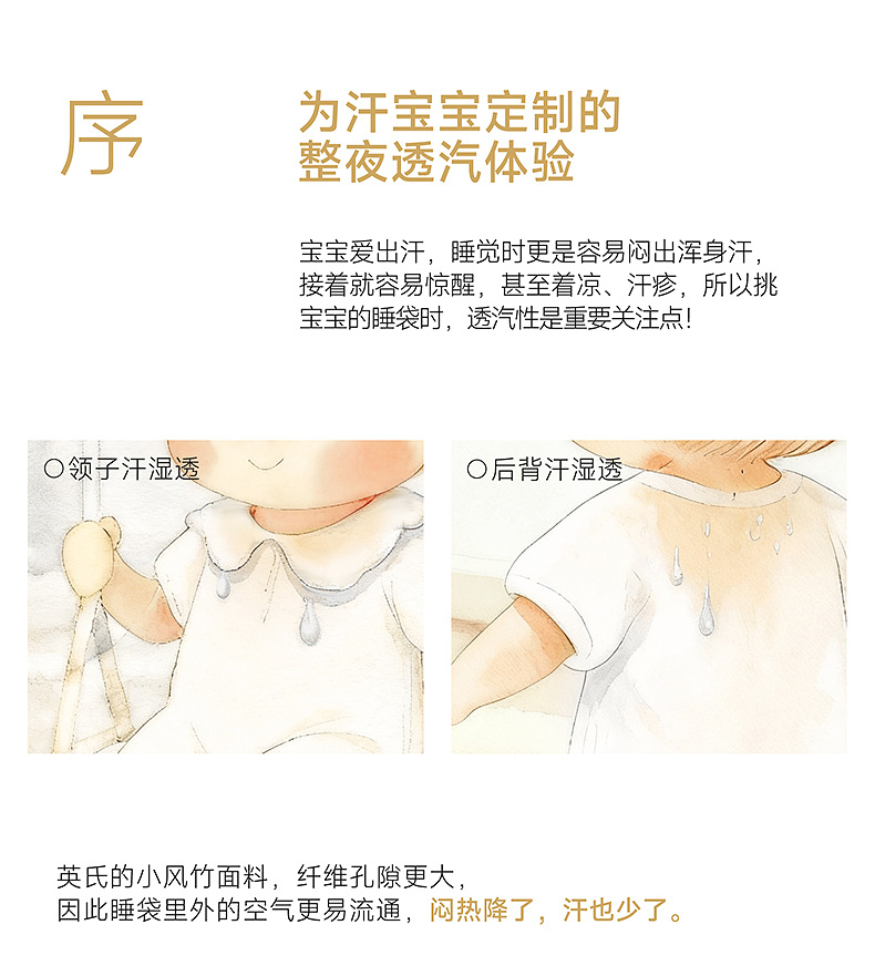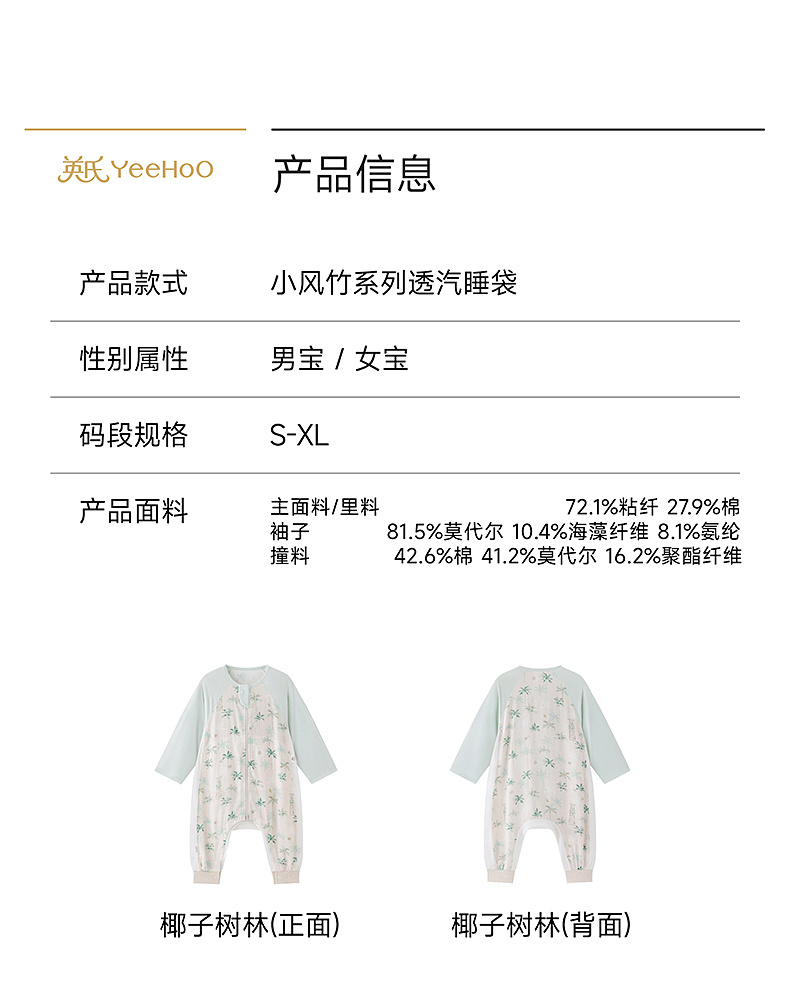 【商场同款】英氏婴儿睡袋春夏款宝宝分腿睡袋竹纤维新生儿防踢被