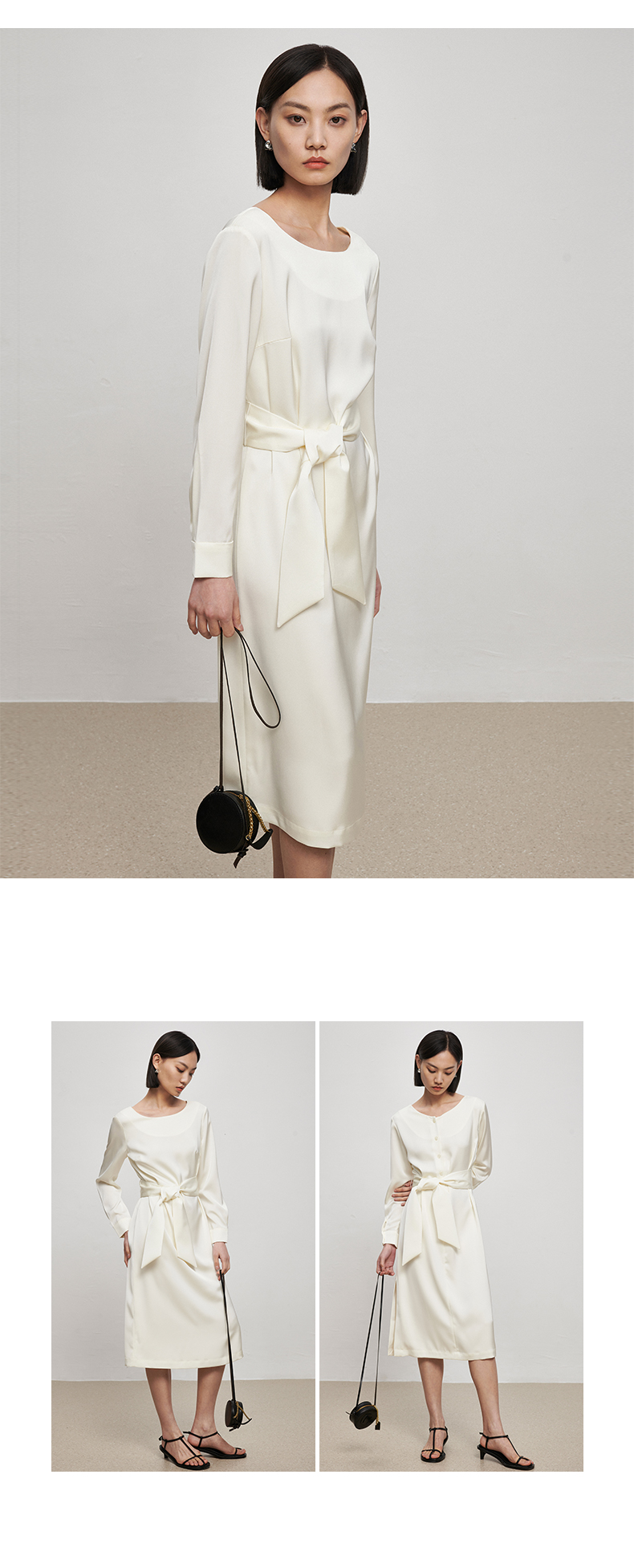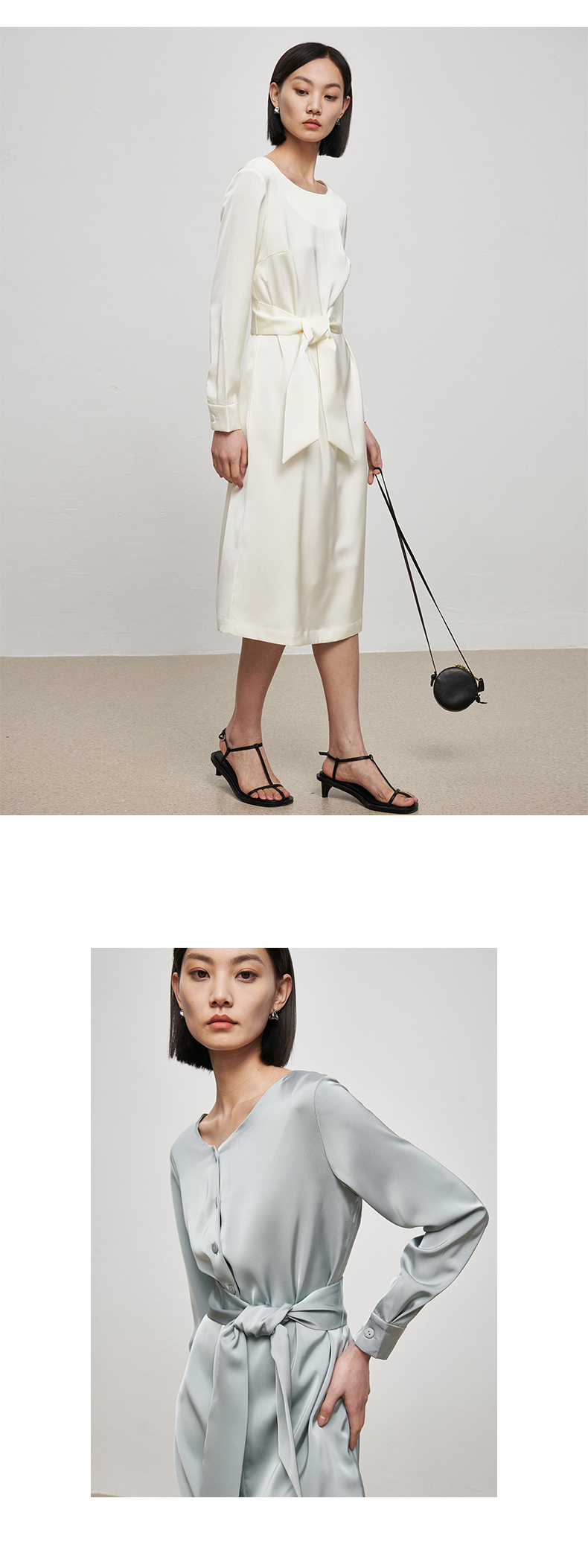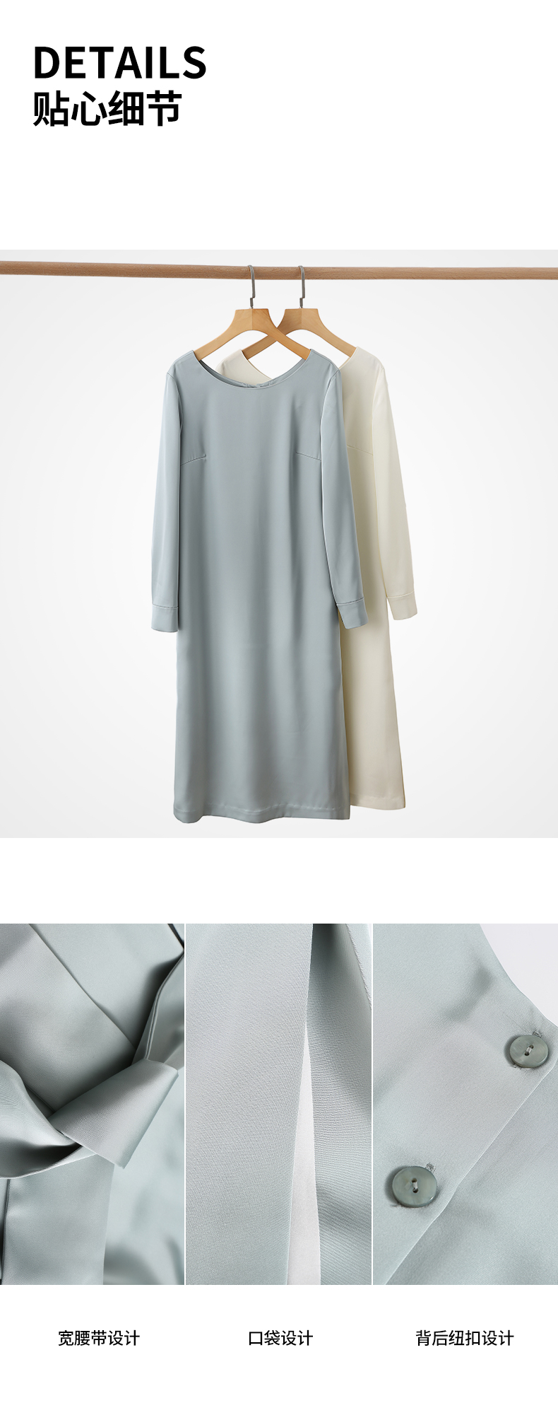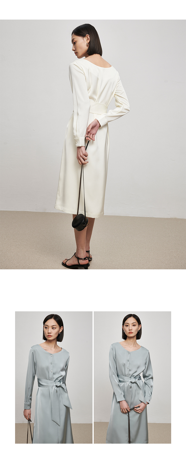 IN AND ON21726高定质感缎面连衣裙女一片式收腰圆领A字裙