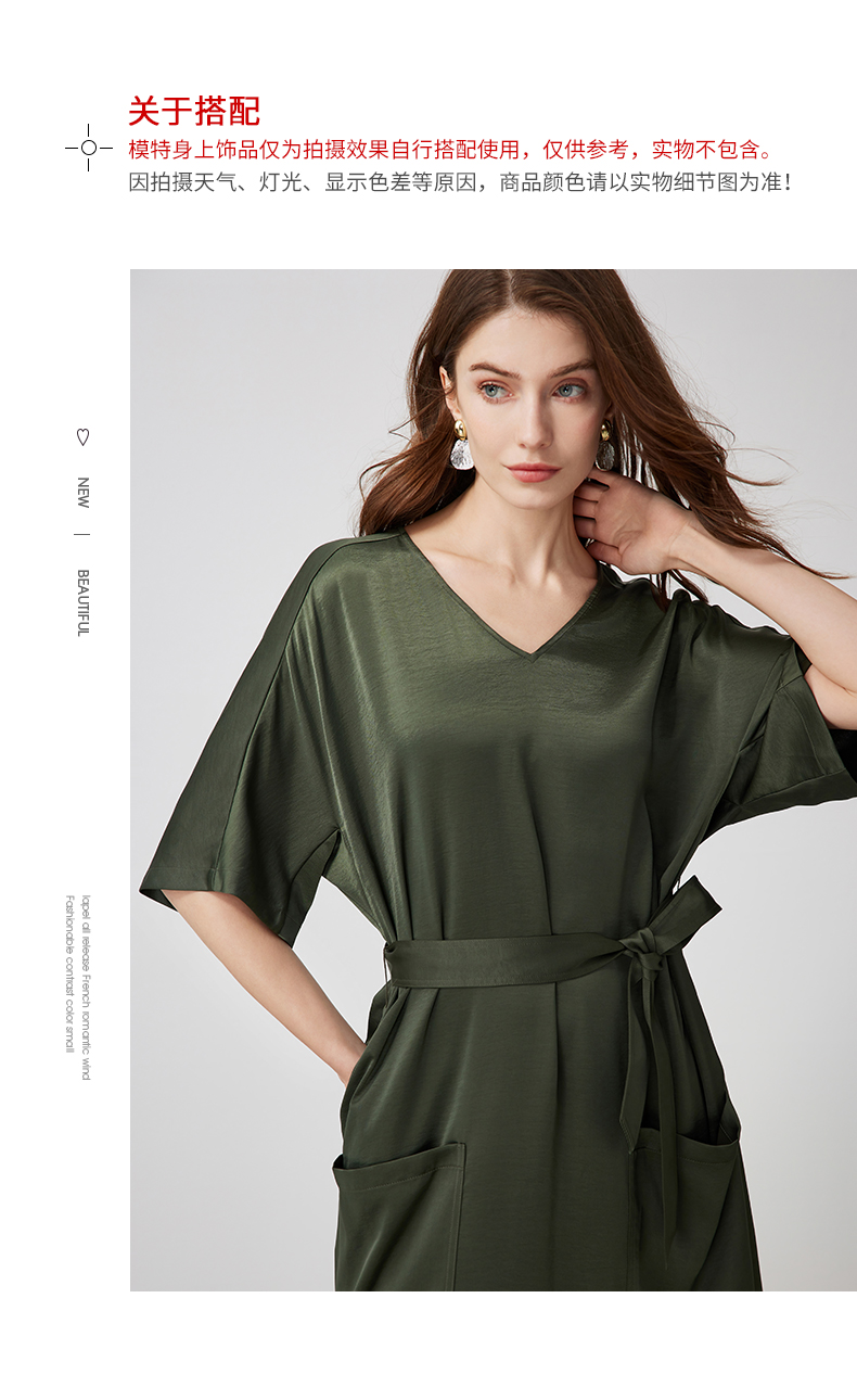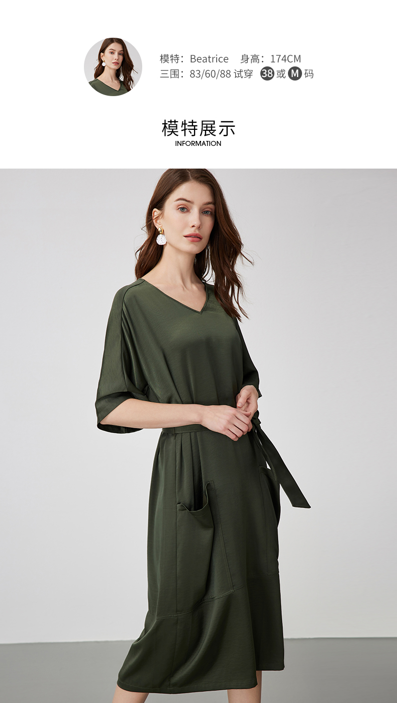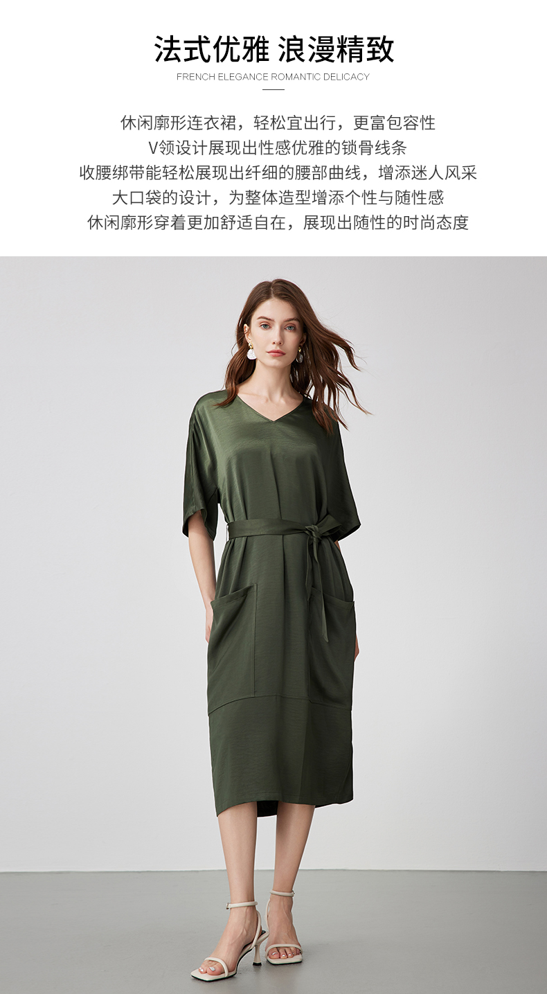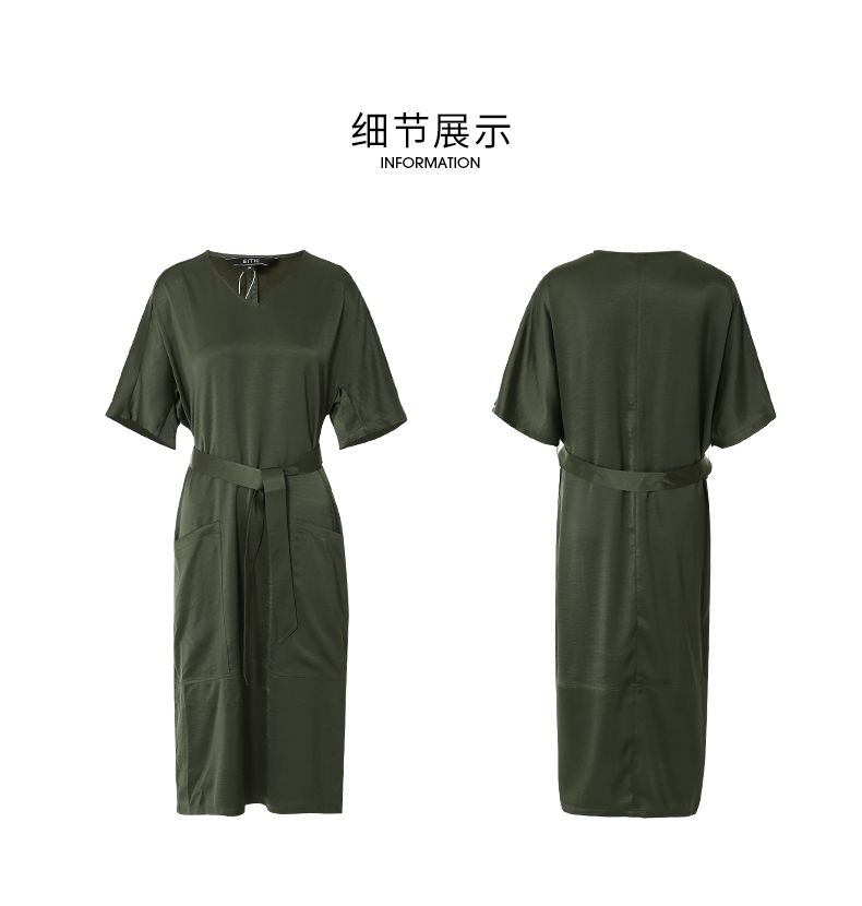 EITIE爱特爱夏季新款时尚气质系带V领显瘦连衣裙7307045