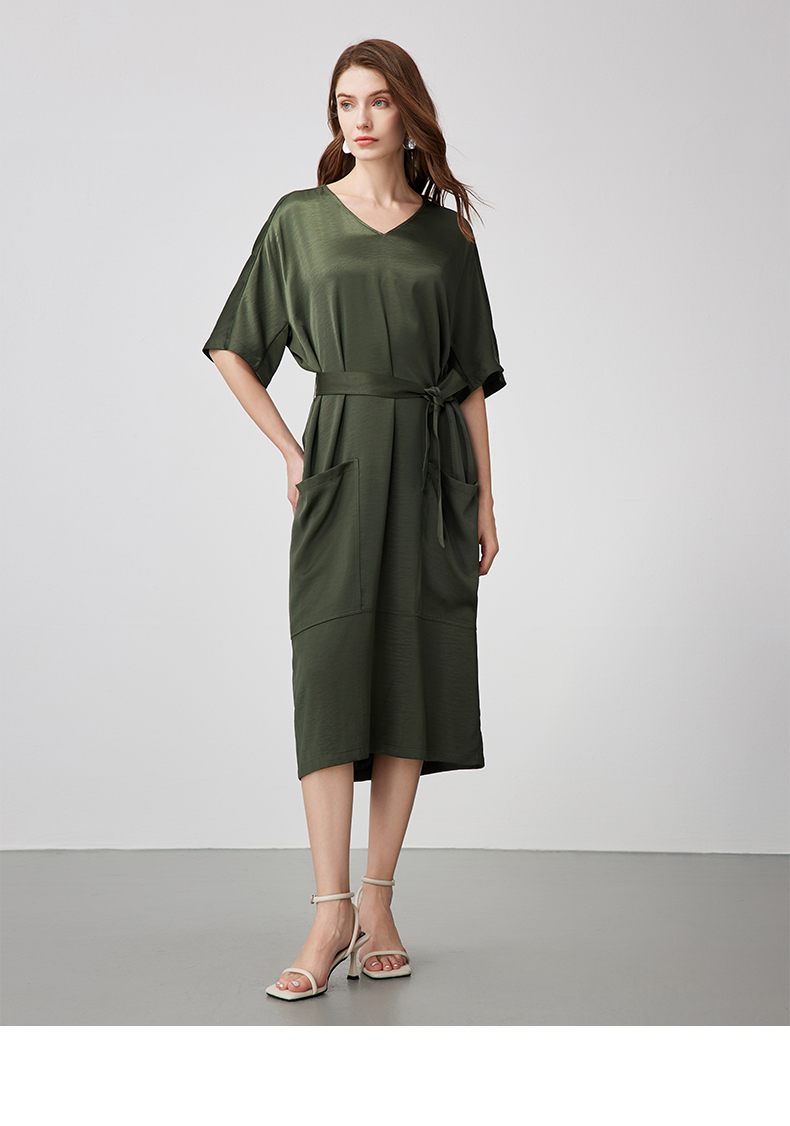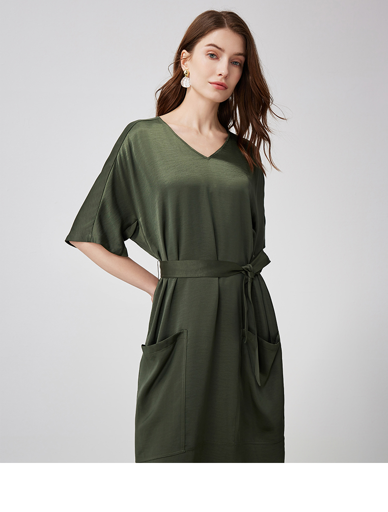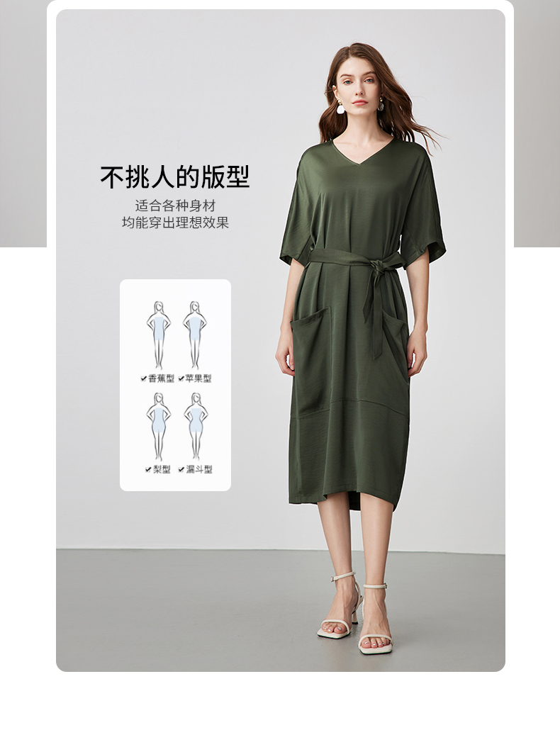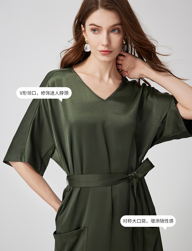 EITIE爱特爱夏季新款时尚气质系带V领显瘦连衣裙7307045