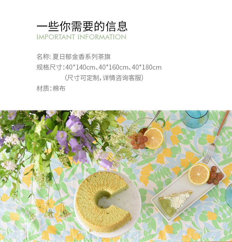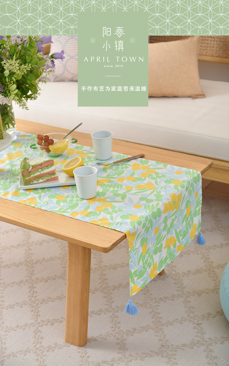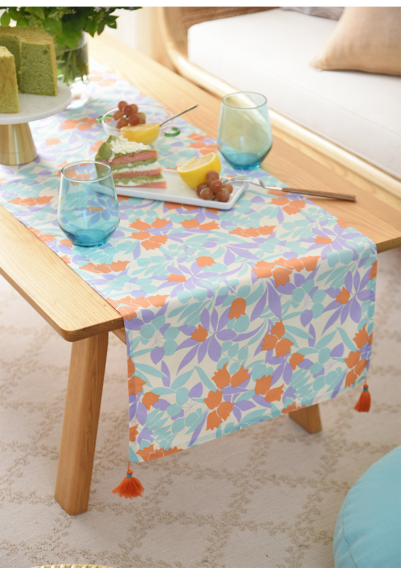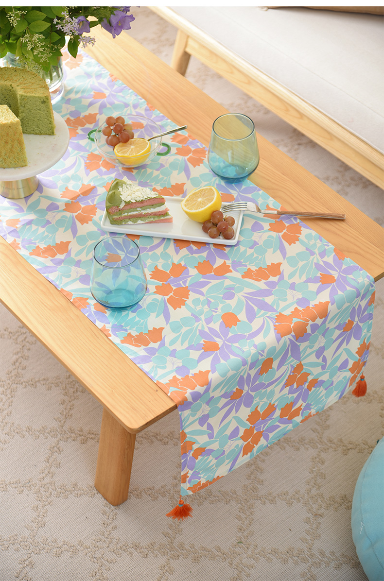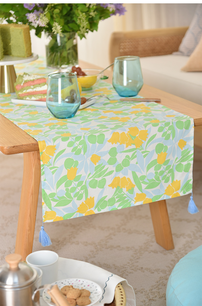 夏日郁金香系列茶旗轻奢高端桌旗茶几田园复古