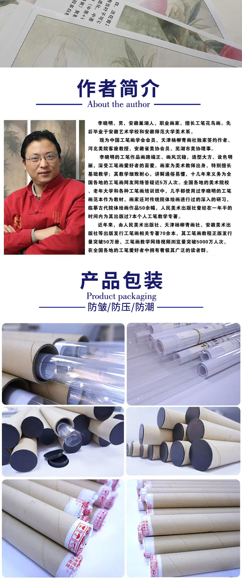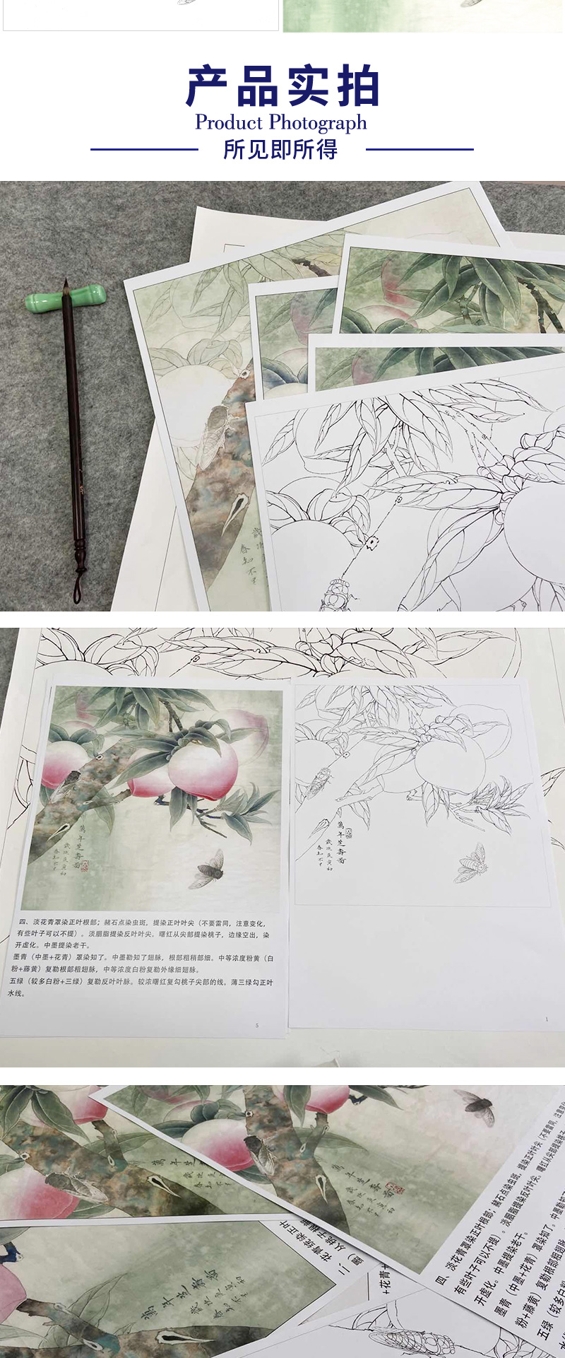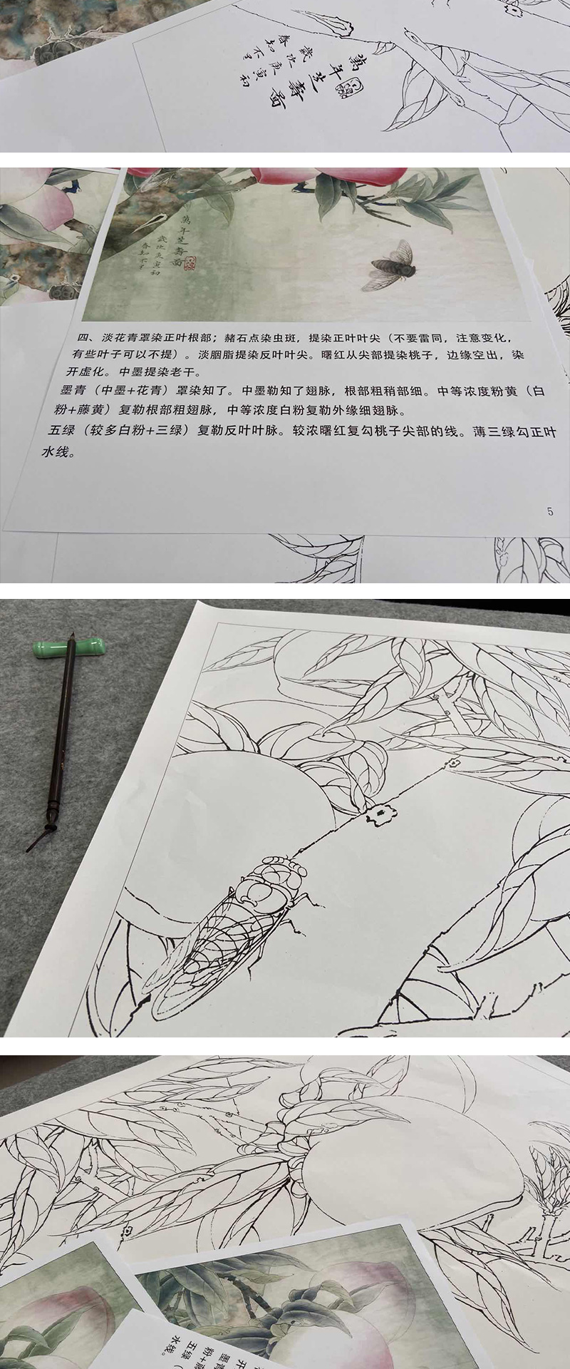 【有步骤、大彩图】李晓明工笔画白描底稿斗方小品《万年芝寿图》寿桃临摹勾线花鸟线稿KB22