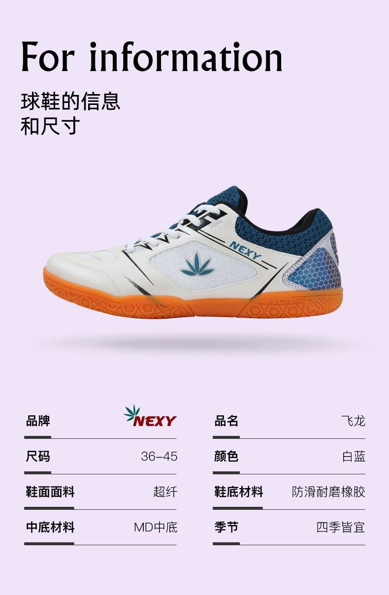 NEXY耐仕乒乓球鞋飞龙专业乒乓球运动鞋防滑耐磨透气支撑男女同款白蓝色