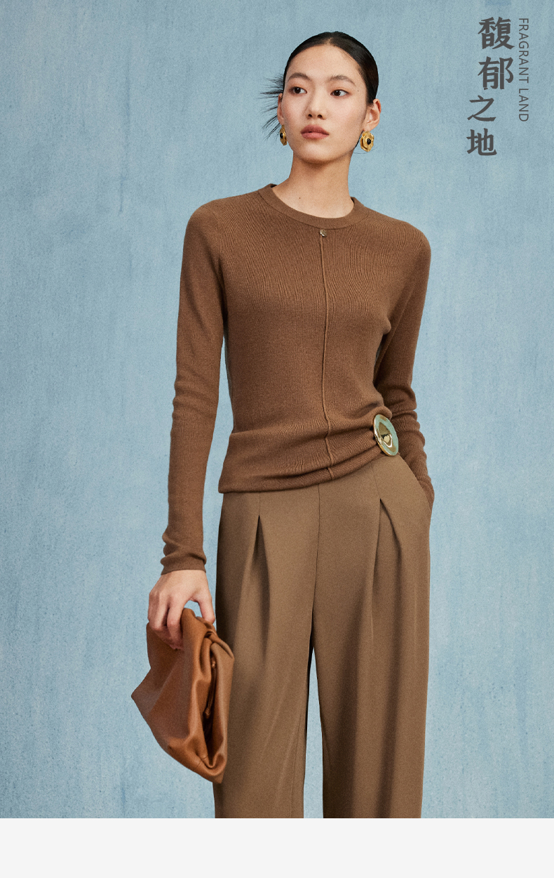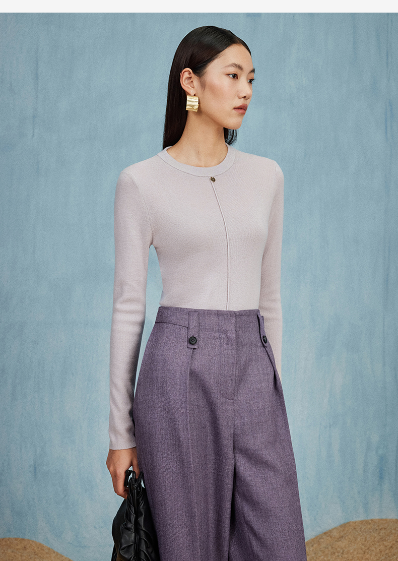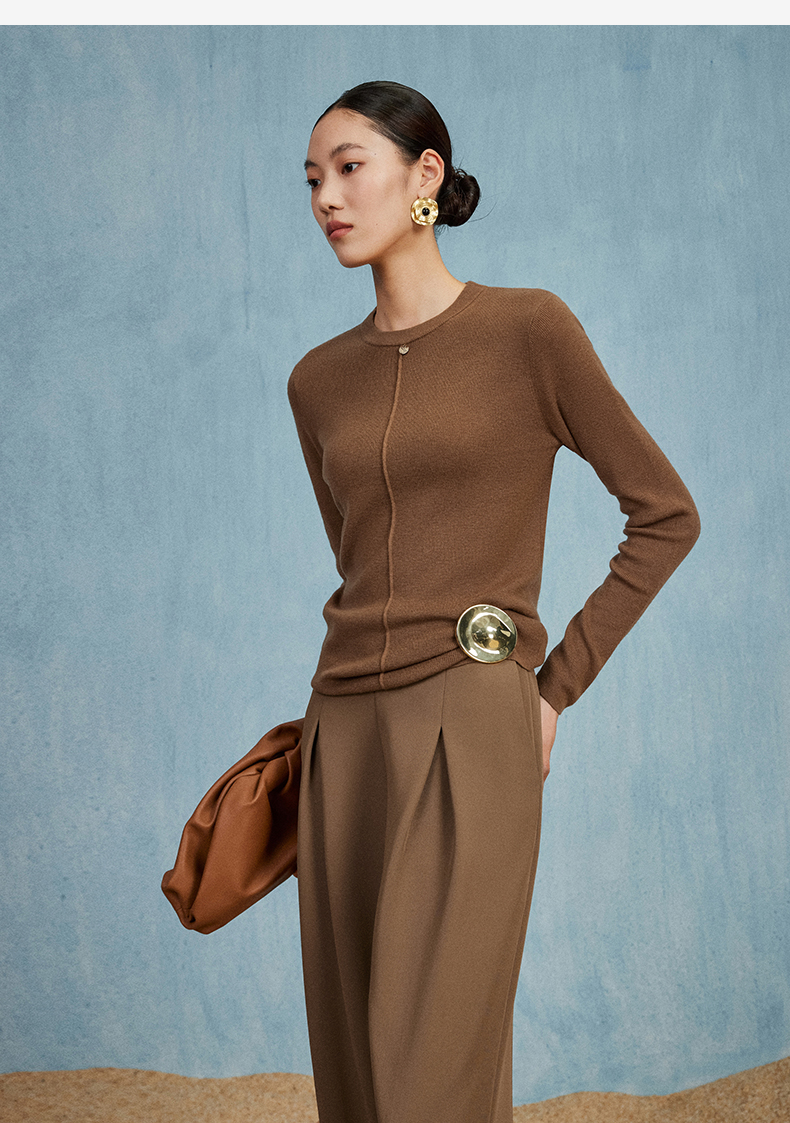 西嘉C+IMPRESS/西嘉知识分子风羊毛衫女金属吊扣秋新款针织打底衫毛衣MY2304017