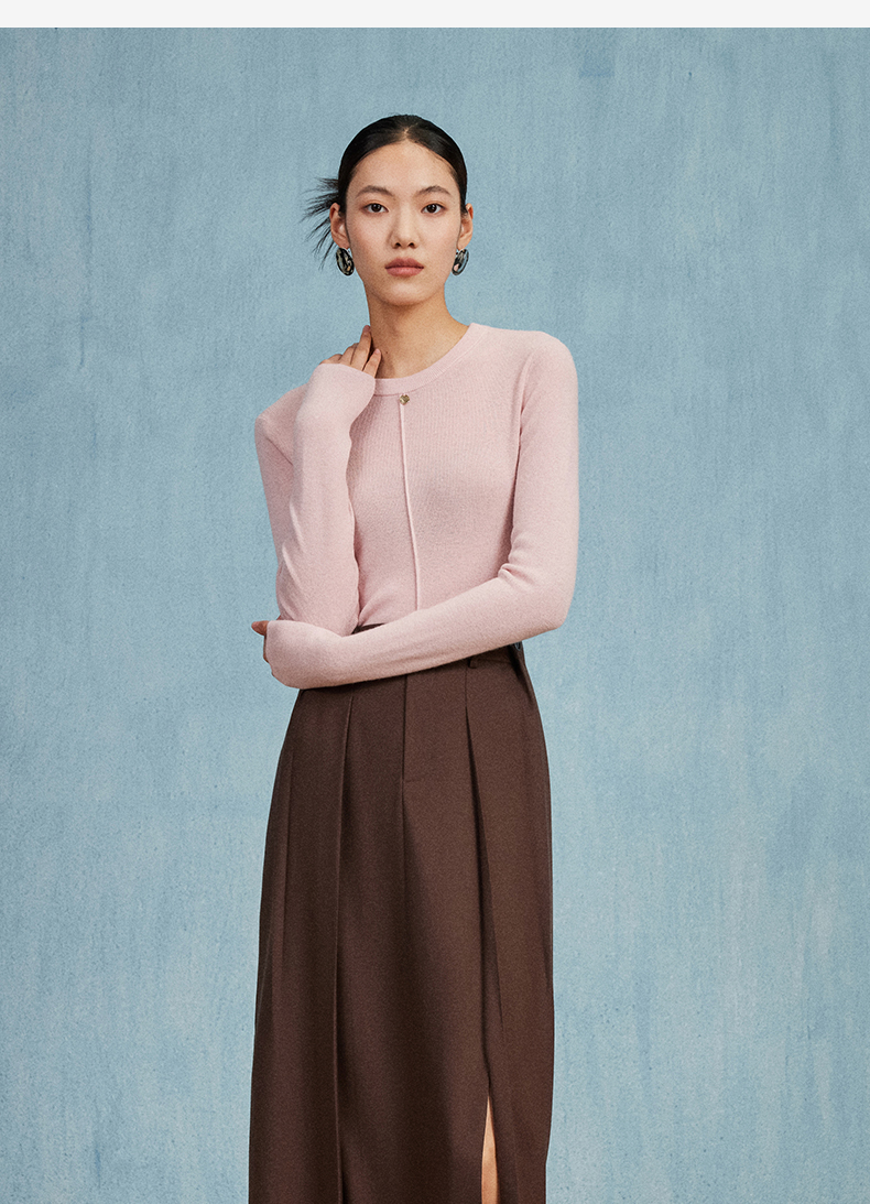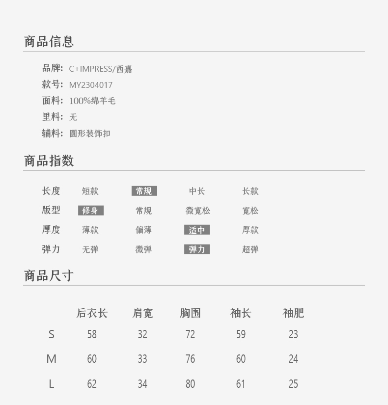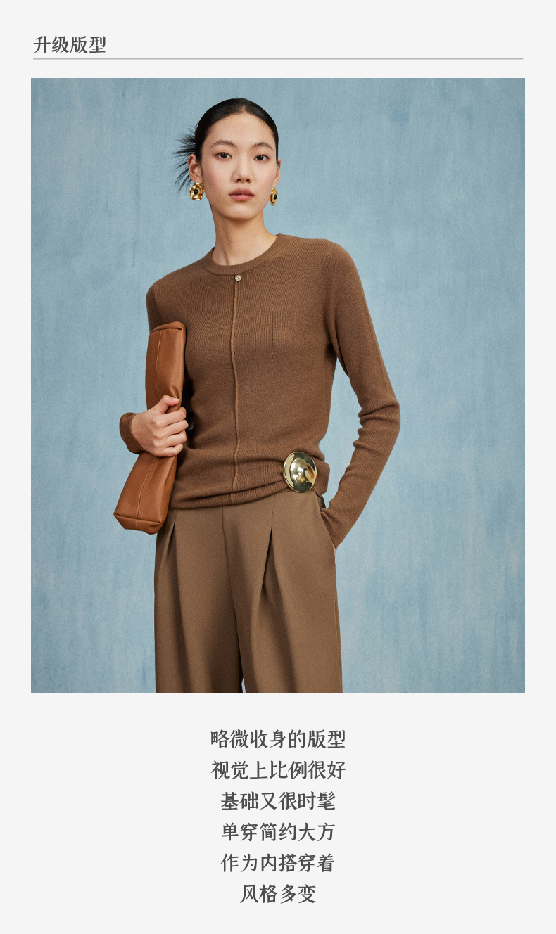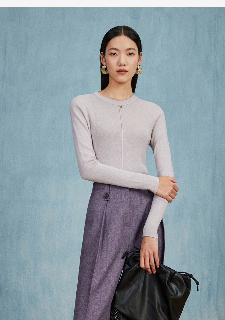 西嘉C+IMPRESS/西嘉知识分子风羊毛衫女金属吊扣秋新款针织打底衫毛衣MY2304017