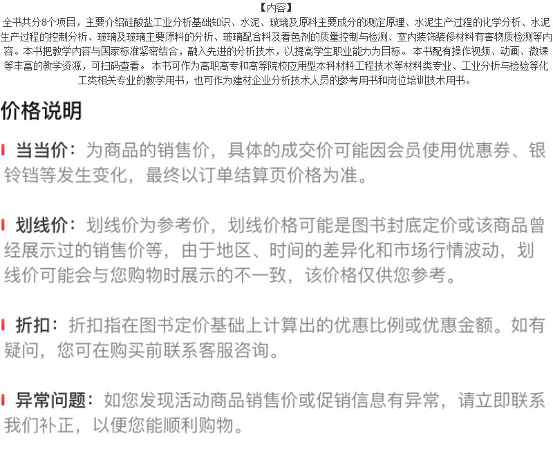 正版书籍 建材化学分析(第二版) 孟庆红、李小娟、谢志峰 主编化学工业出版社97871223743