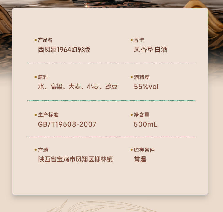 【酒厂直营】 55度西凤酒1964幻彩版 单瓶500ml