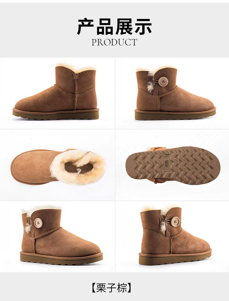 【3-5天发货】【经典木扣款】起程QICHENG皮毛一体女士雪地靴LZ563【LA】