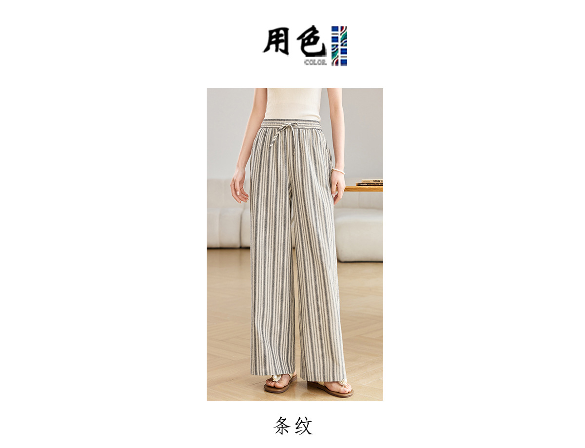 百媚生 休闲条纹阔腿裤抽绳松紧高腰直筒裤BKDYL241 商品图0