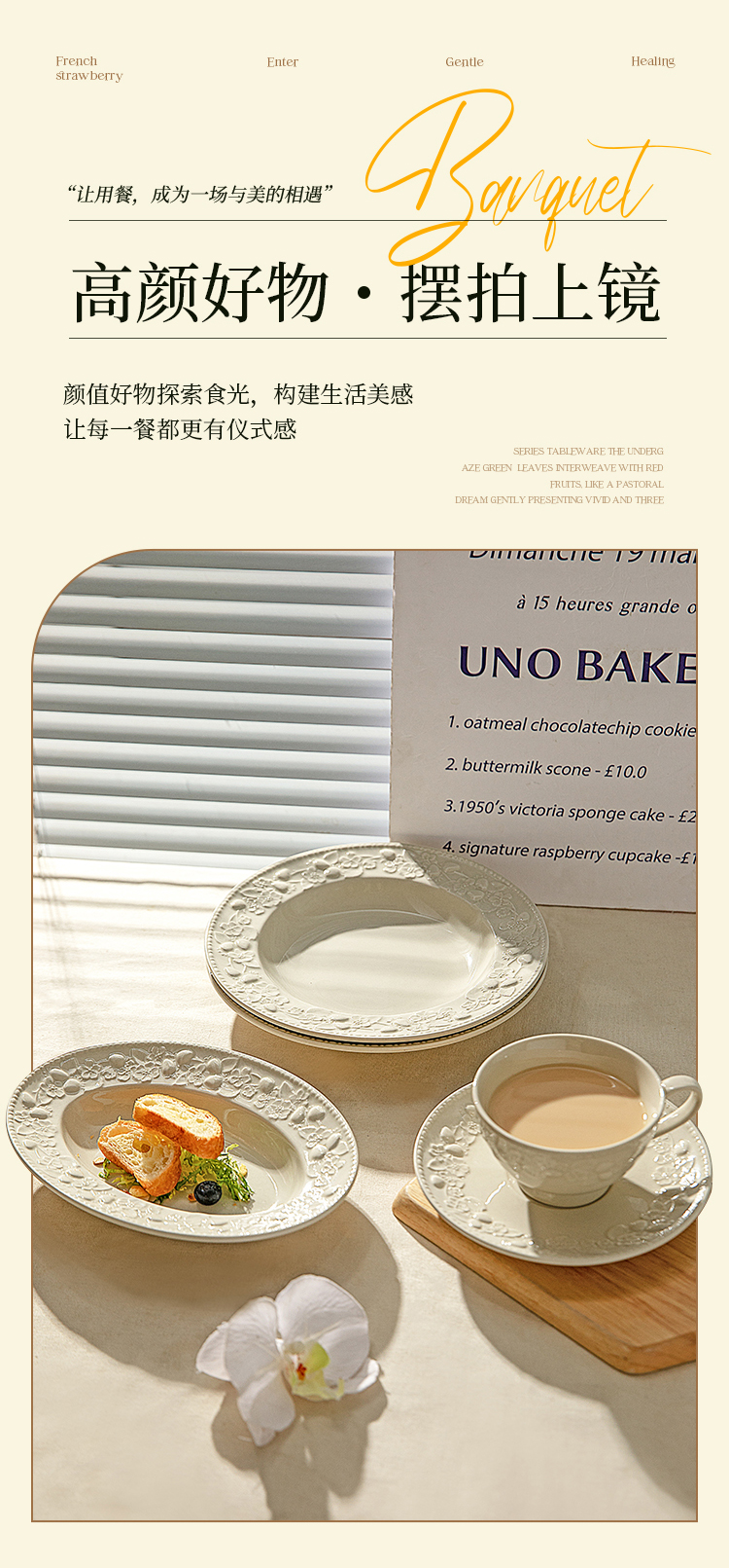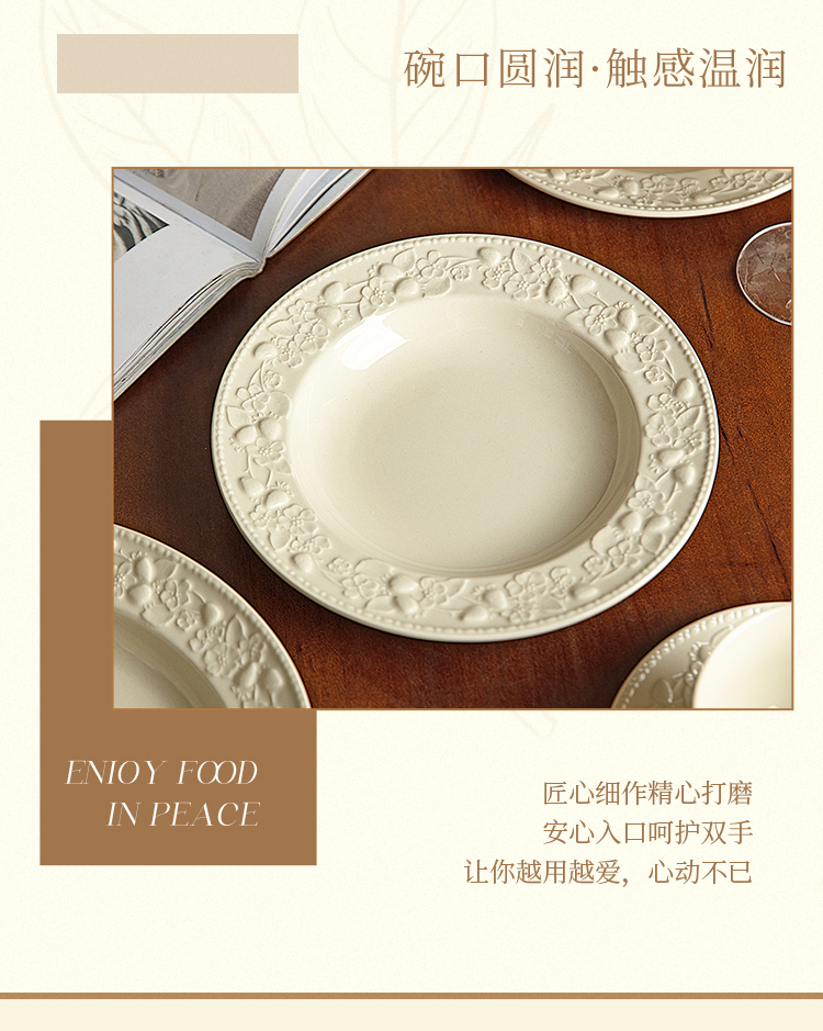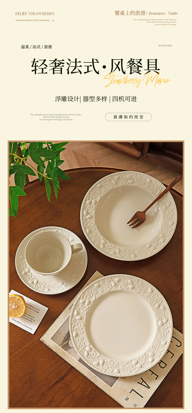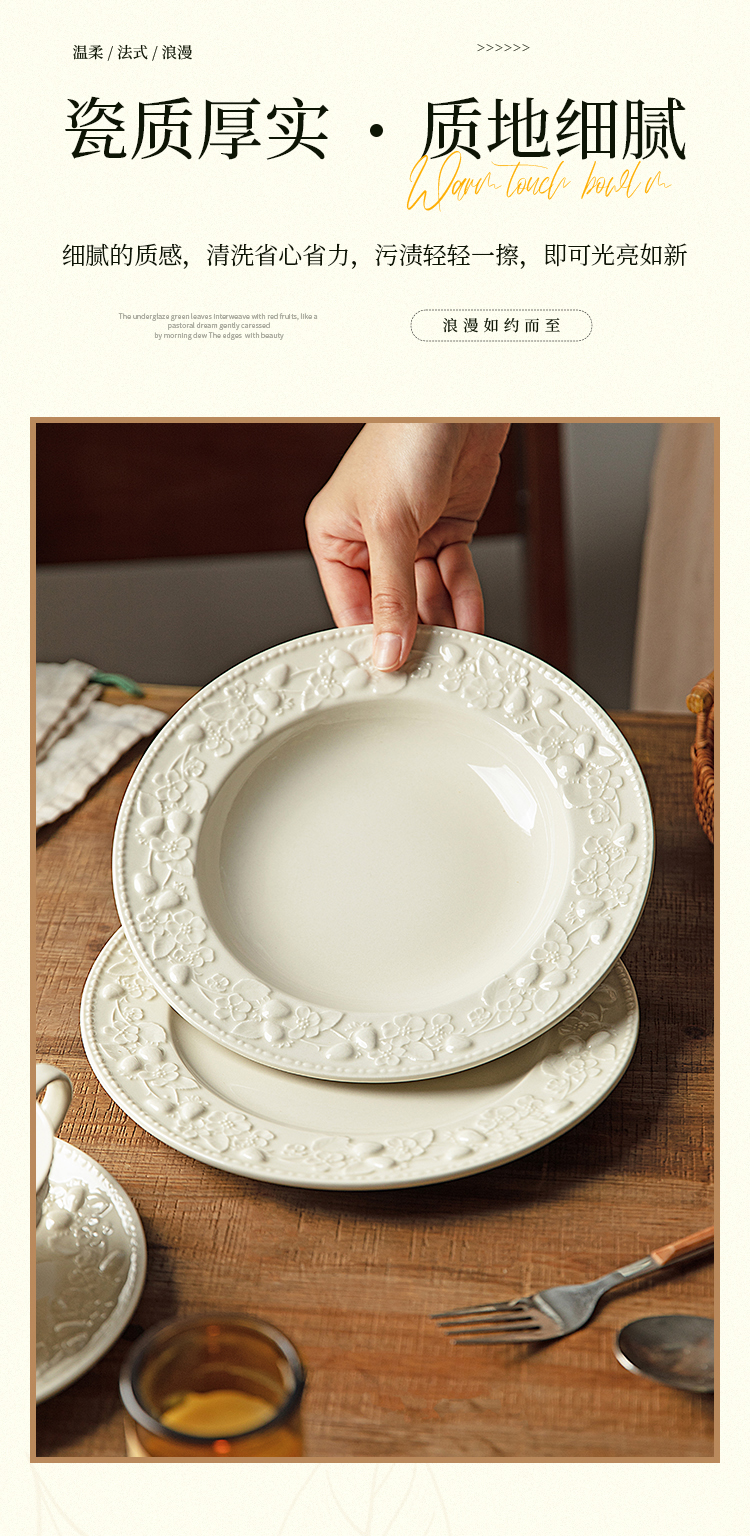 摩登主妇浮雕餐具盘子家用菜盘2025新款高颜值草帽盘鱼盘法式餐盘