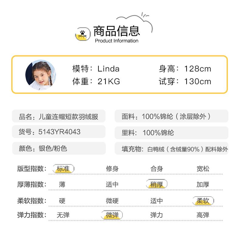 童装 儿童运动羽绒服轻薄款女童秋冬中大童短款厚外套5143YR4043