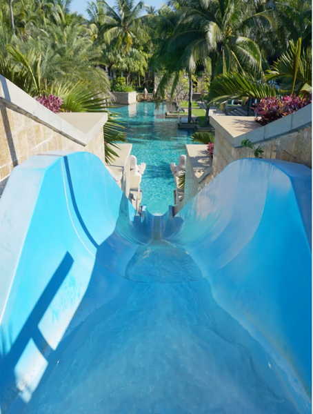 泳池有很多个,有些互相连通,还利用地势差,建了一个水上滑梯,非常有趣,适合喜欢水上活动的家庭。