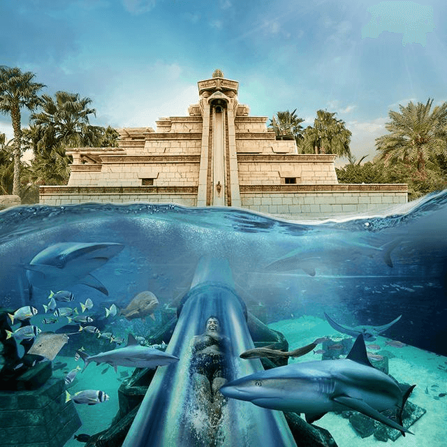 在85000平方米的亚特兰蒂斯水世界冒险乐园,住在这里都可恣意畅游水上乐园,在名为“勇者无惧”和“放手一搏”的急速滑道感受与鲨鱼擦肩,体验自由落体式的刺激,在长达1.7公里的极速漂流中开启冒险之旅,激起水花四溅。高速滑落后,你还将通过环绕水道,鲨鱼从眼前游过,距离近得连鲨鱼牙缝都能看清,放肆尖叫吧!