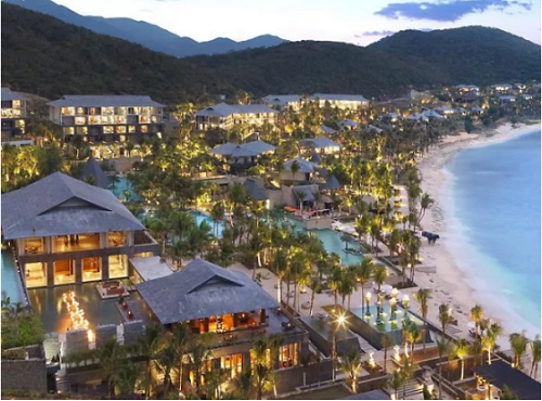 酒店一共有297套客房,包括别墅。和岘港洲际异曲空间。同工的设计元素就是在这里,利用地势差,打造了好几层的