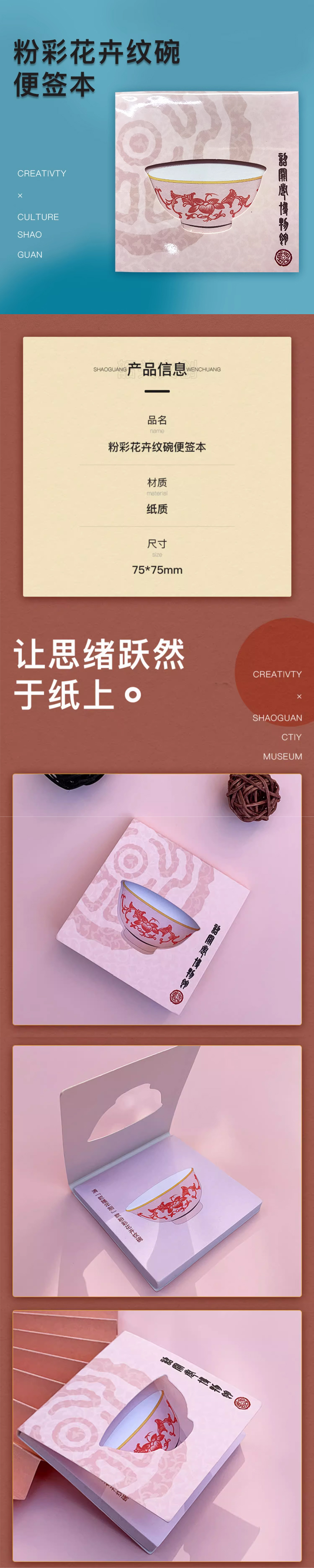 【韶关市博物馆文创】粉彩花卉纹碗款便签本标签纸可撕便携小本子卡通便条