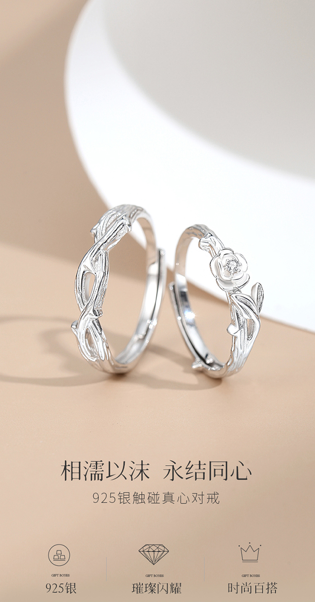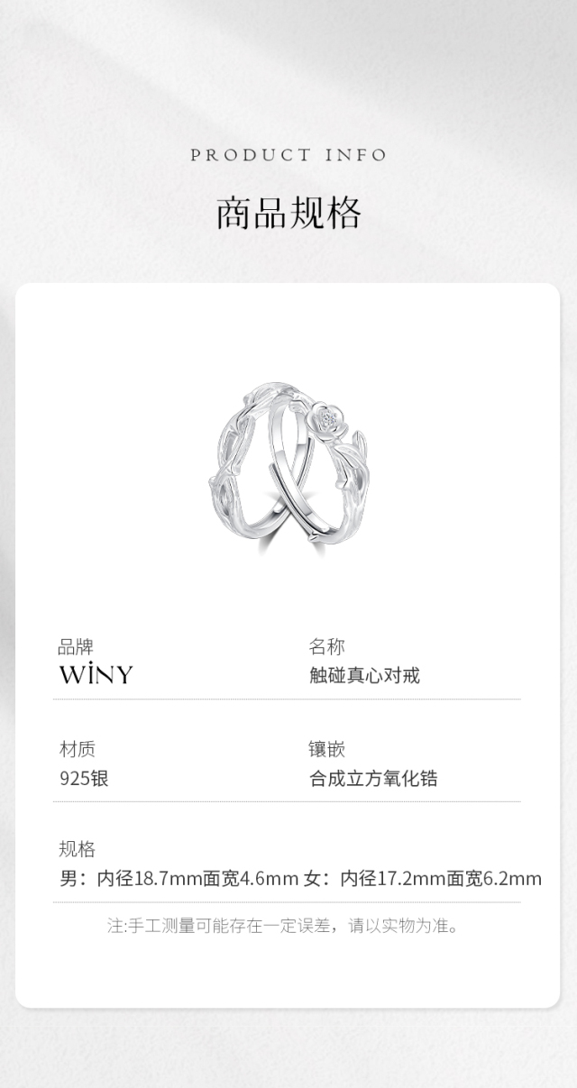 Winy925纯银触碰真心对戒送女友闺蜜节日生日礼物