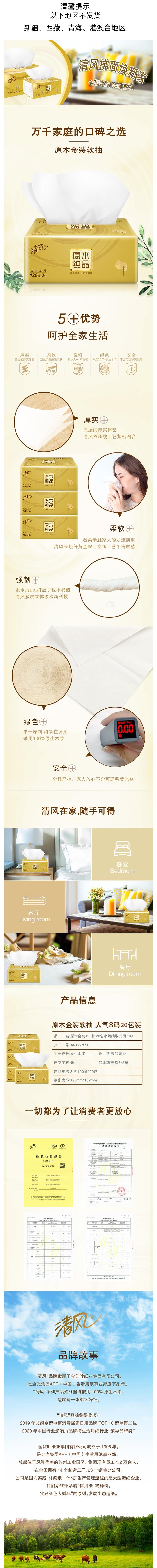 清风 金装抽纸3层120抽抽取式面纸20包 AR14YNZ1
