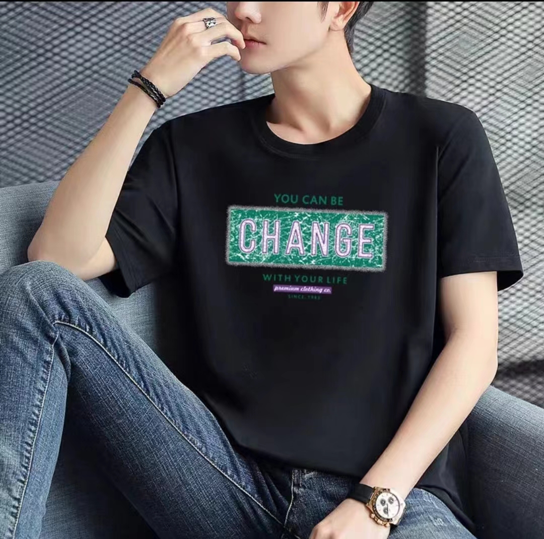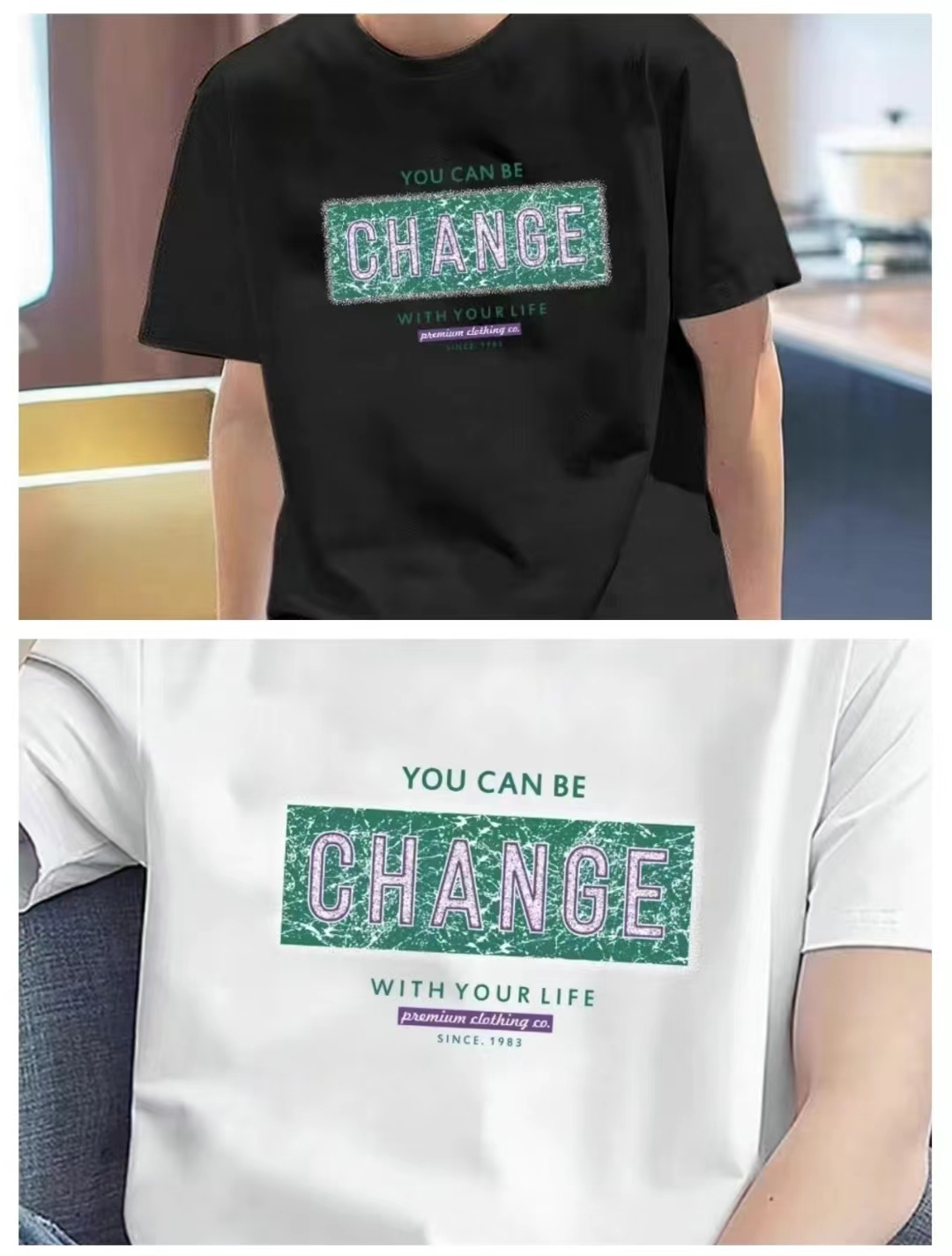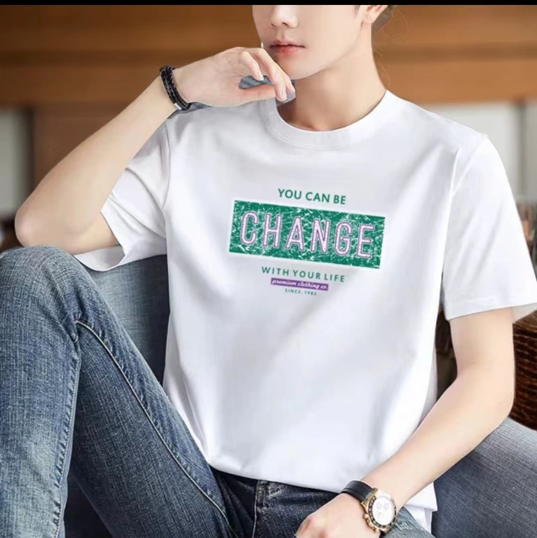 【限时价】喜出100%棉- 仿旧裂纹绿条字母 印花情侣T恤