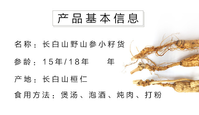 【野山参】东北桓仁小籽货野山参人参 个小参力足 滋补好礼 15年/18年