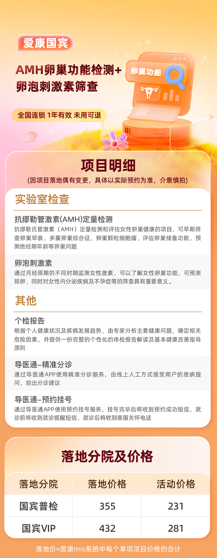 爱康国宾 AMH卵巢功能检测+卵泡刺激素(适用于20岁以上女性)
