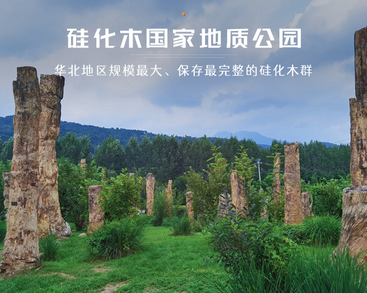 华北地区规模最大、保存最完整的硅化木群(恐龙时代植被的化石)。被誉为“地质教科书”和“天然植物化石博物馆”。