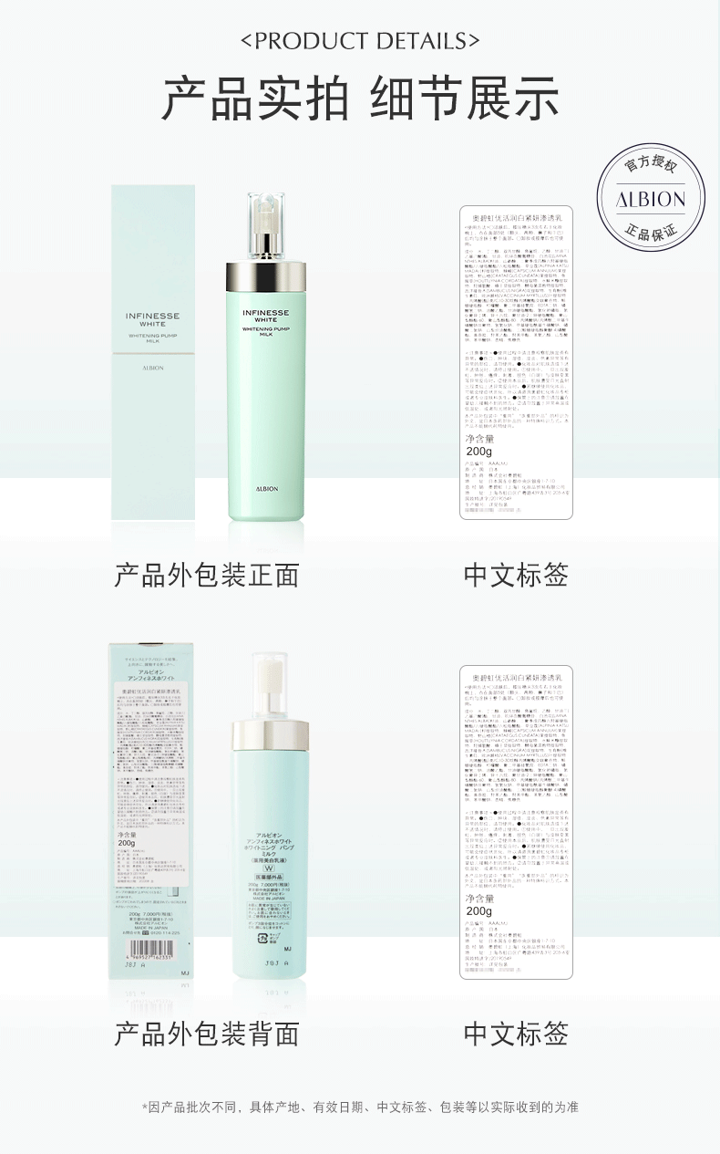 ALBION澳尔滨优活润白紧妍渗透乳光嫩瓶 心选到家