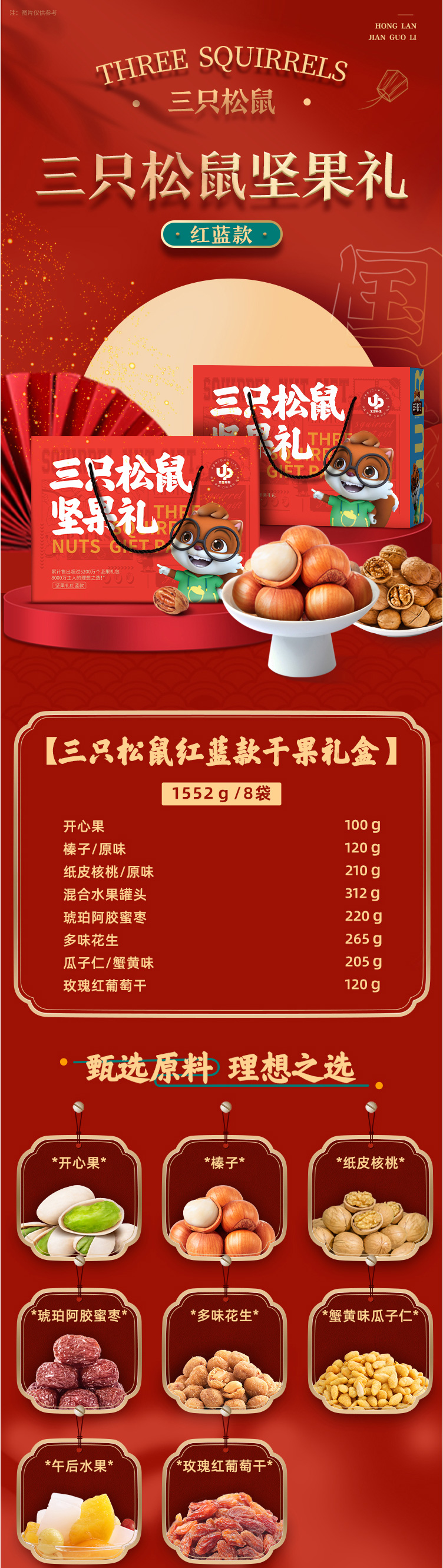【年货好礼】三只松鼠 红蓝款 坚果年货礼盒1552g