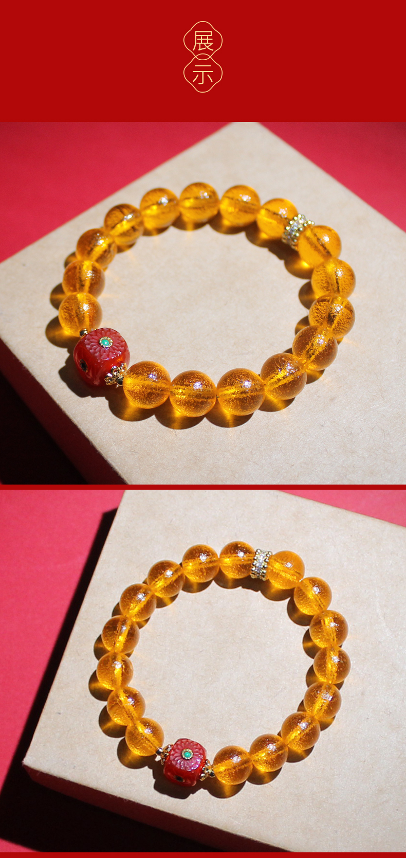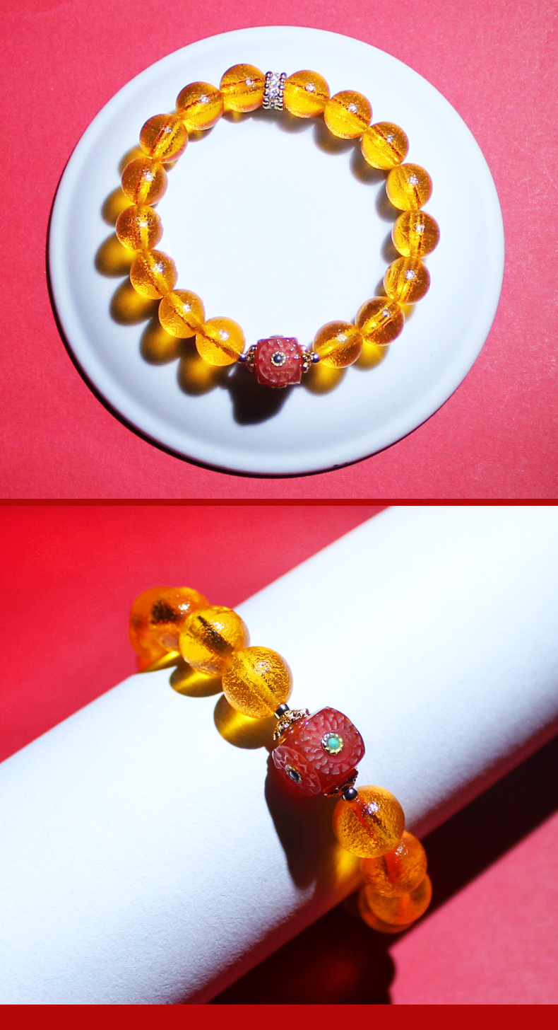宋韶光大师 飞黄腾达【天珠包金款】黄色琉璃手链情侣饰物