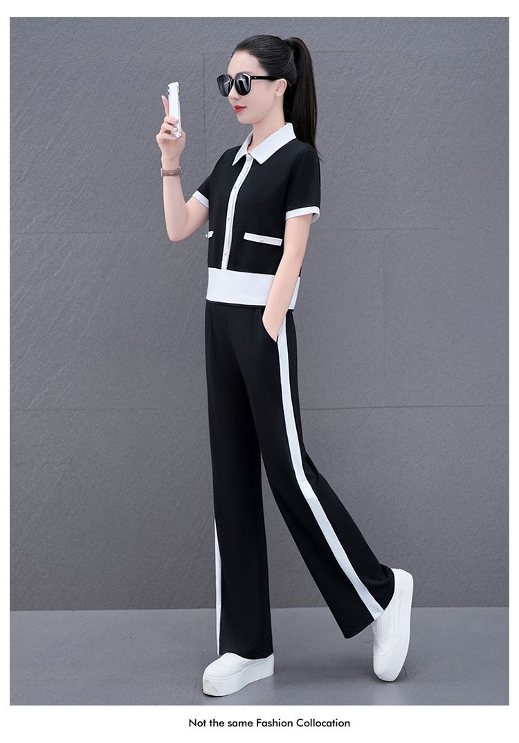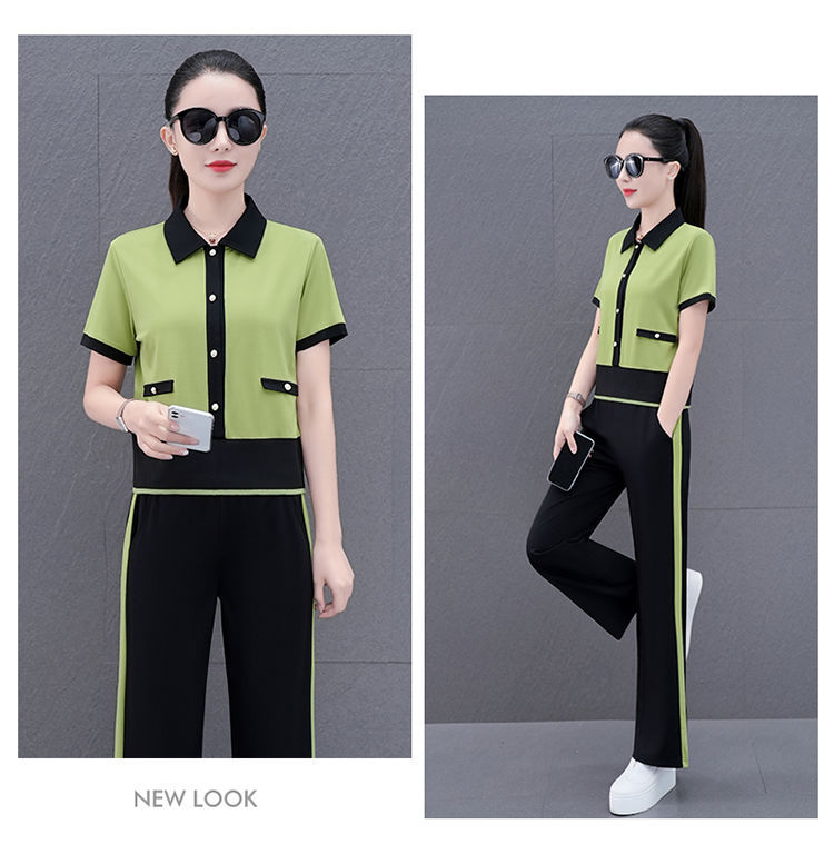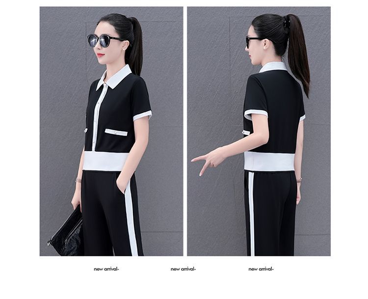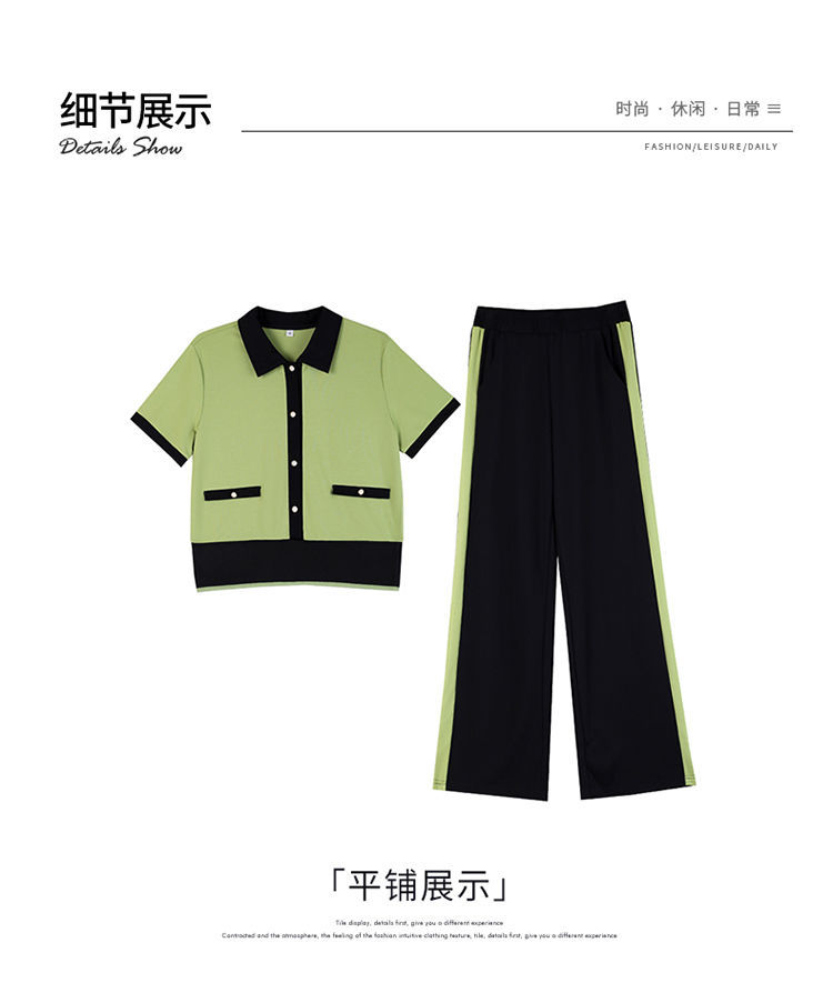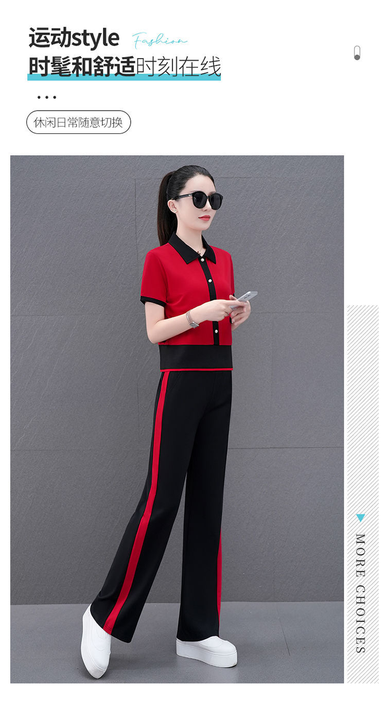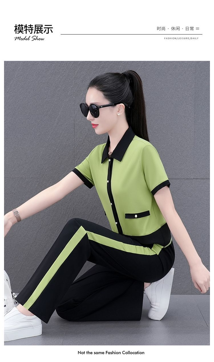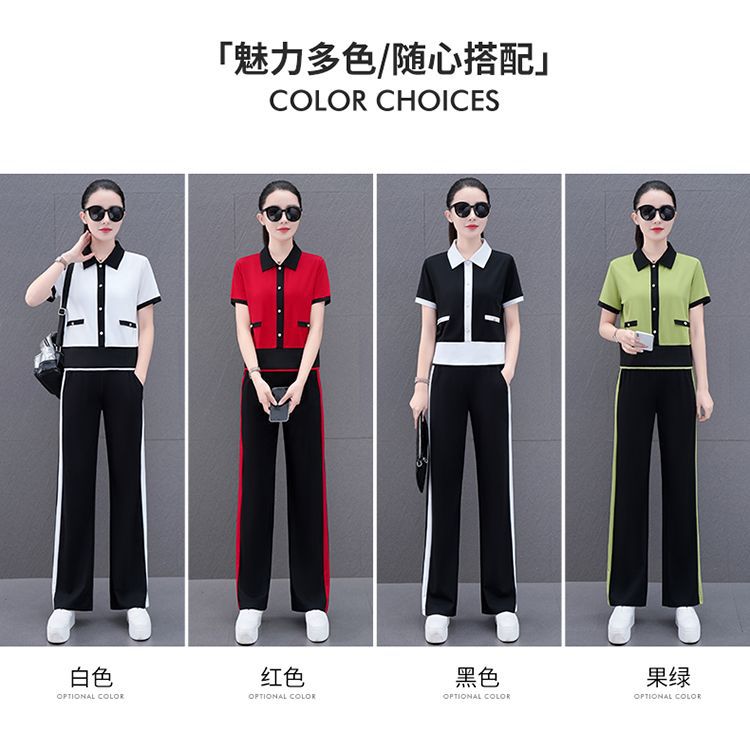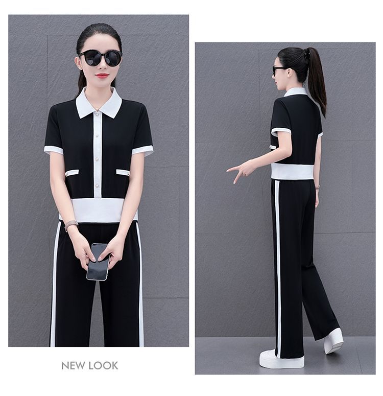 SP171-23017翻领休闲运动服套装女夏季2023新款时尚洋气宽松显瘦年轻两件套潮