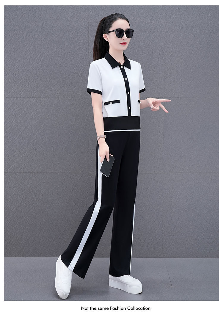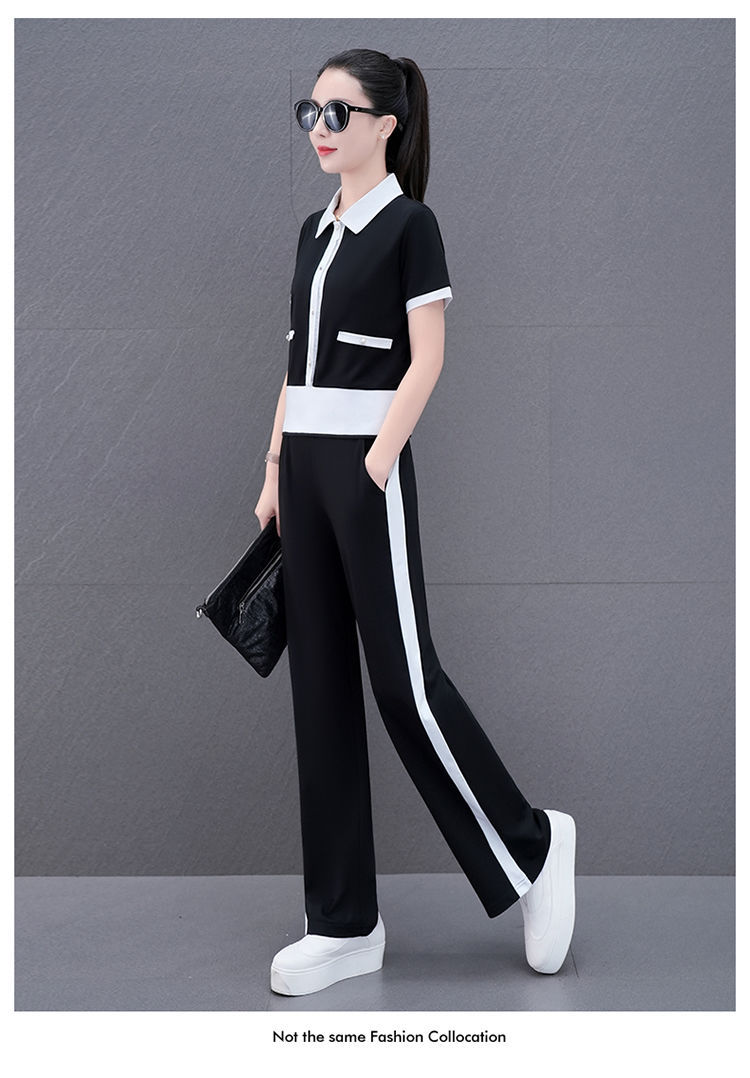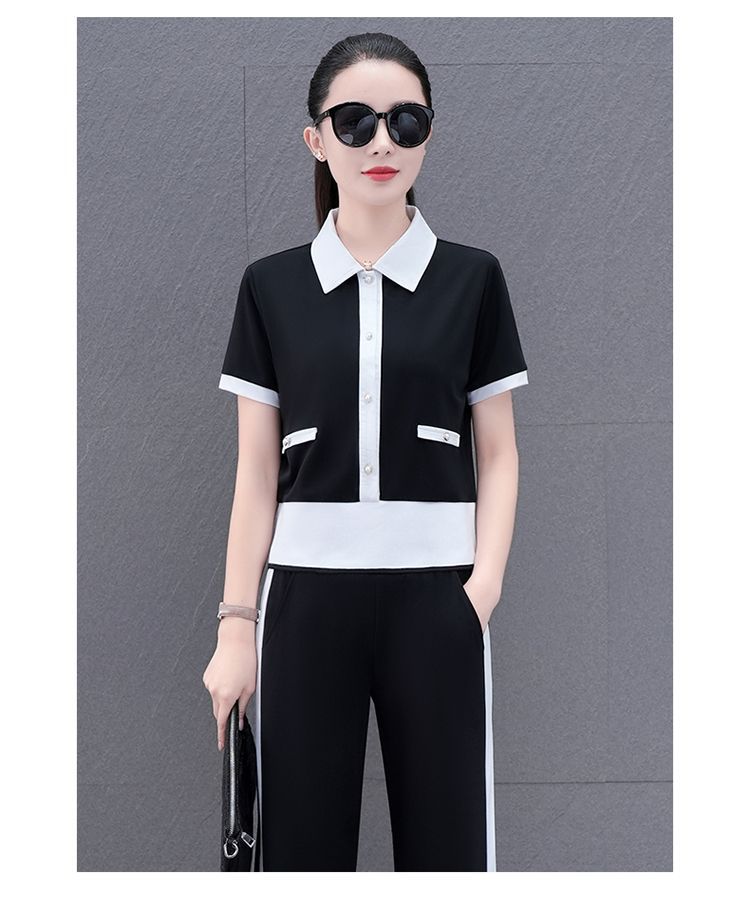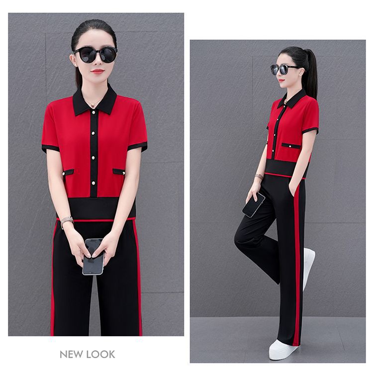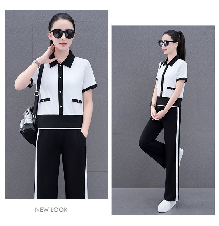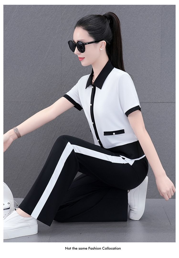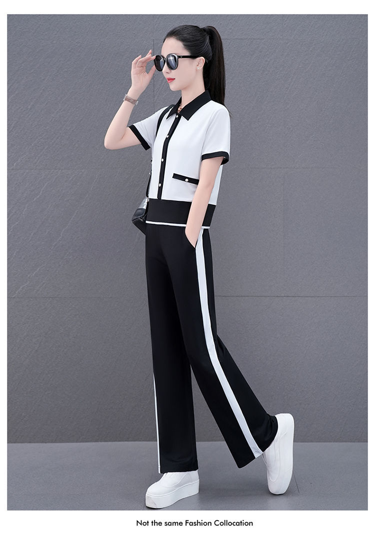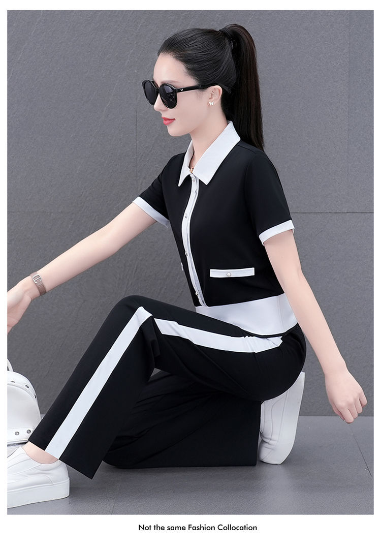 SP171-23017翻领休闲运动服套装女夏季2023新款时尚洋气宽松显瘦年轻两件套潮
