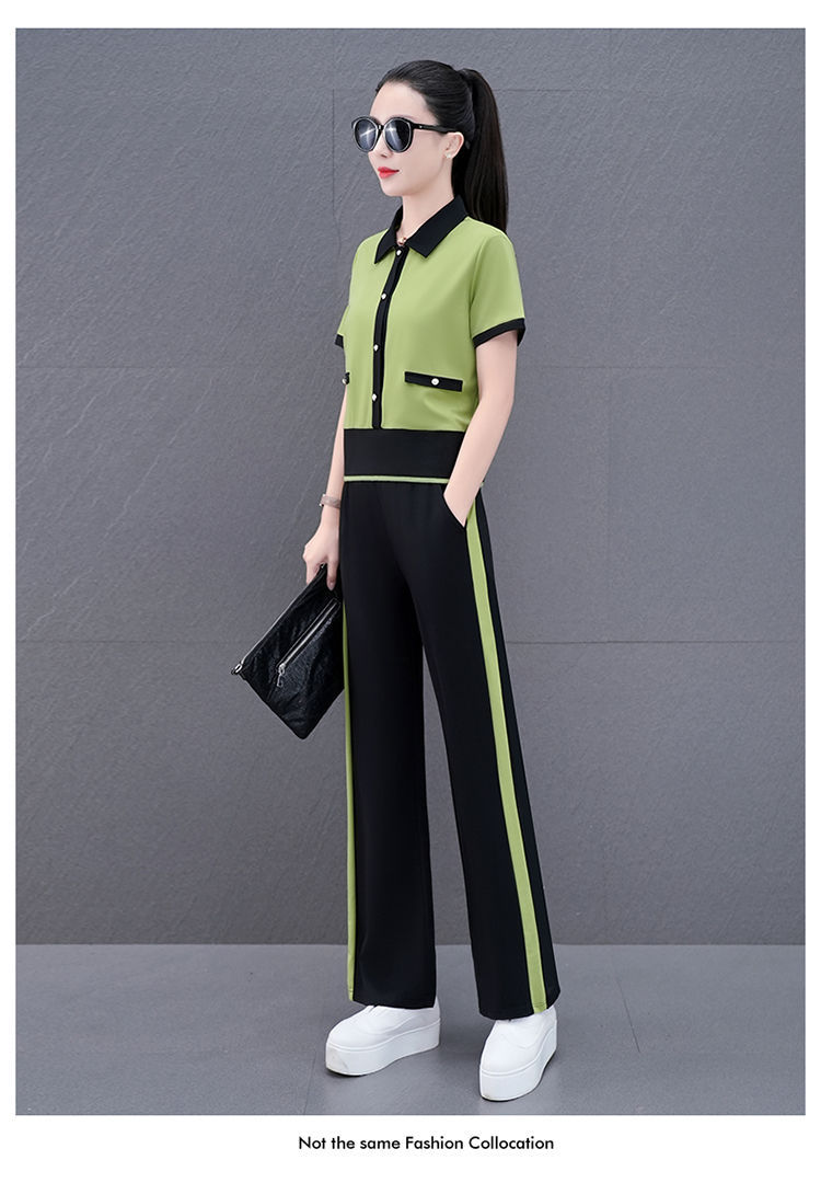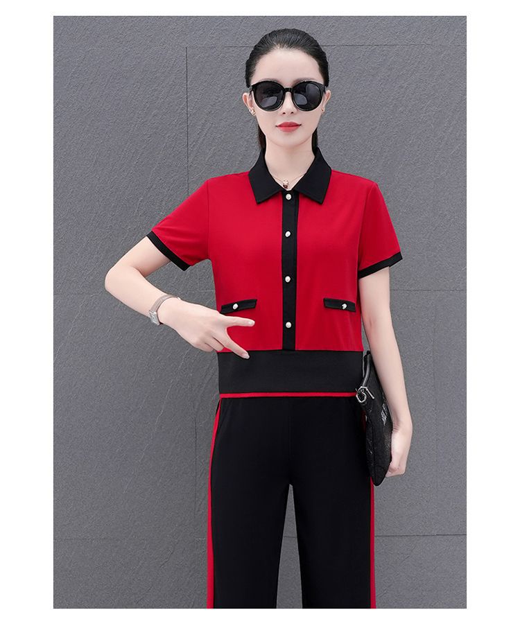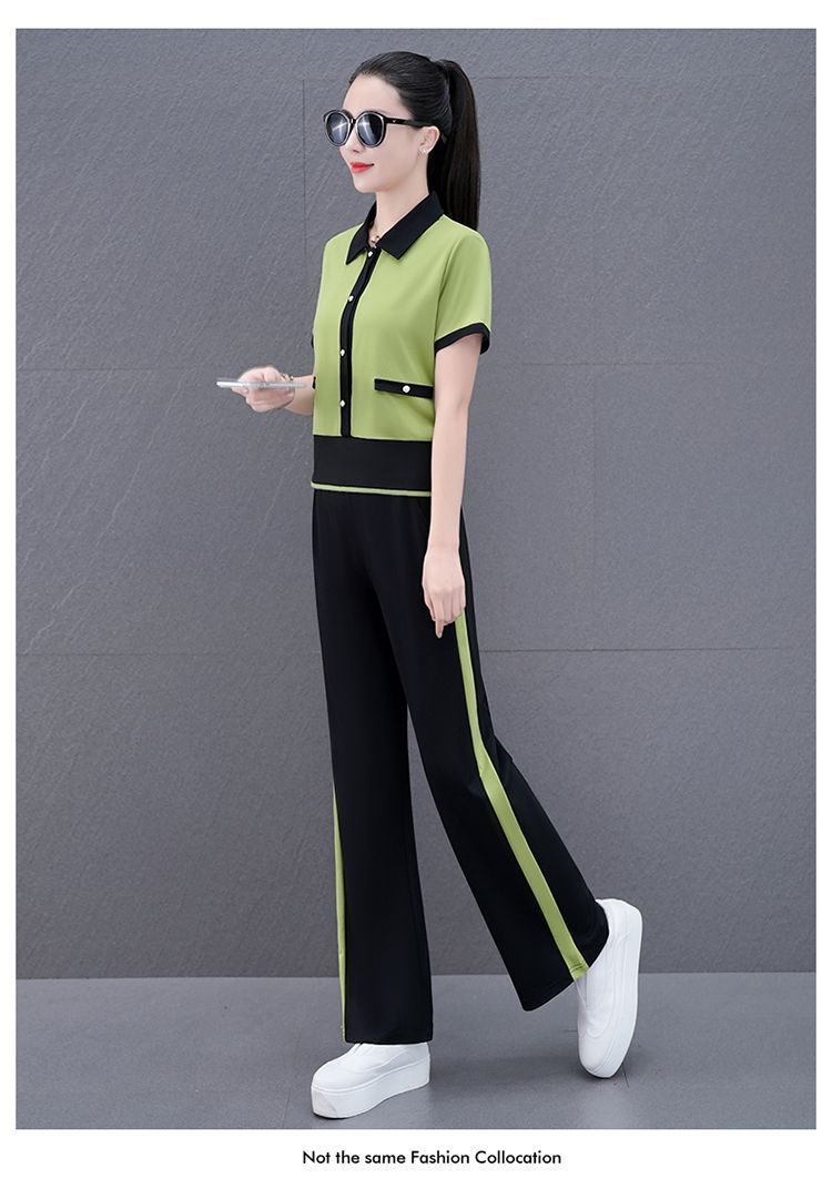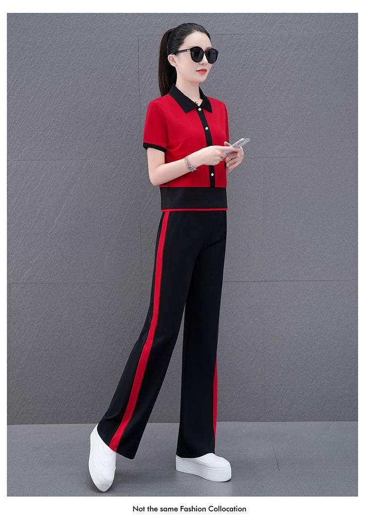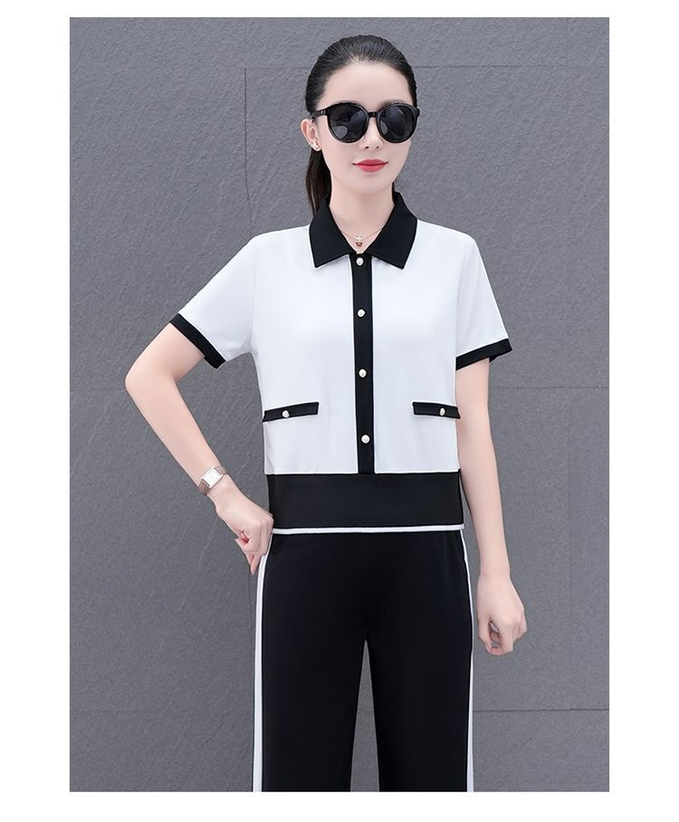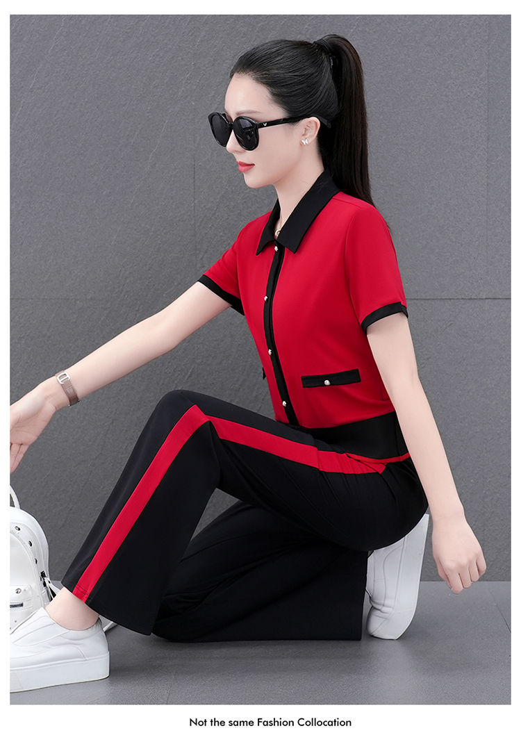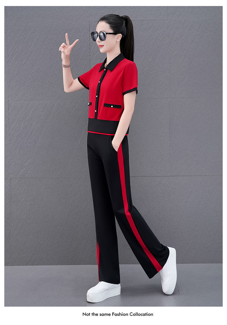 SP171-23017翻领休闲运动服套装女夏季2023新款时尚洋气宽松显瘦年轻两件套潮