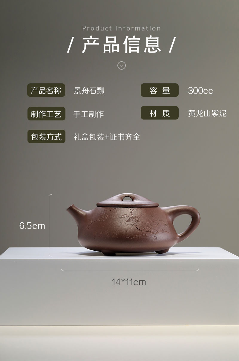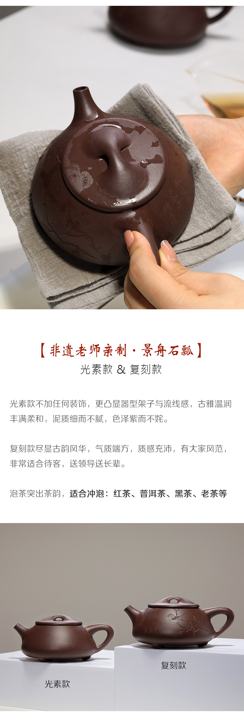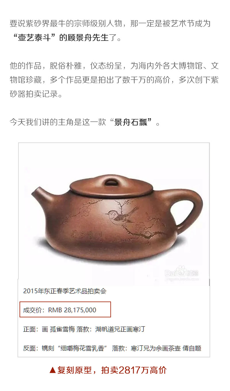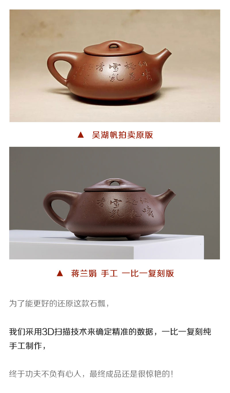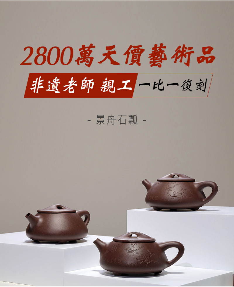 顾景舟复刻紫砂壶 非遗传承人亲制 『景舟石瓢』 2800万拍品原版复刻 宜兴原矿紫砂壶 收藏紫砂艺术品 手工制作 一比一复刻 双刀刻绘