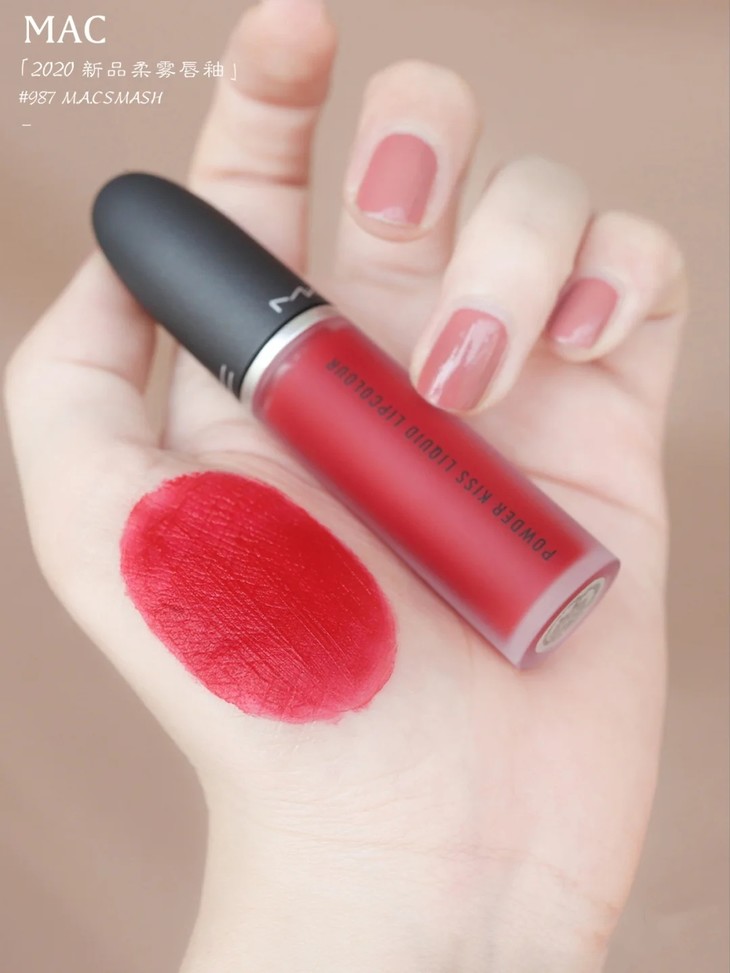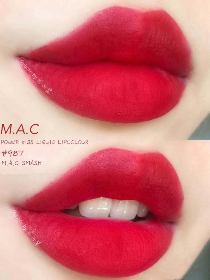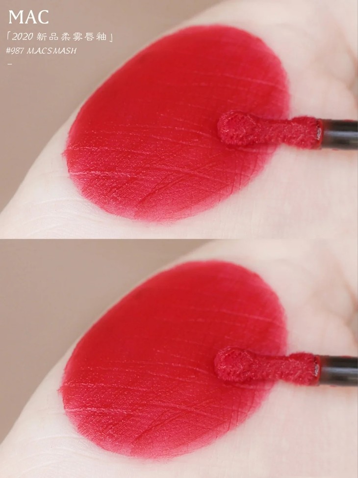 MAC 魅可唇釉#987 M.A.CSMASH👍野生红莓🍓。王牌炸场王💥,这款漂亮姐姐色yyds🤩~正红带点梅调,就像咬了一小口小辣椒🌶,又美又飒。薄涂是那种清透的水红色❤️,用来做咬唇妆,又纯又欲😚,简直就是女团色🤪。厚涂看是红艳,其实还有些紫调,气场十足💃,走在路上秒杀所有人的感觉⚡️,这款超显白,上嘴很有质感。💁强烈推荐~