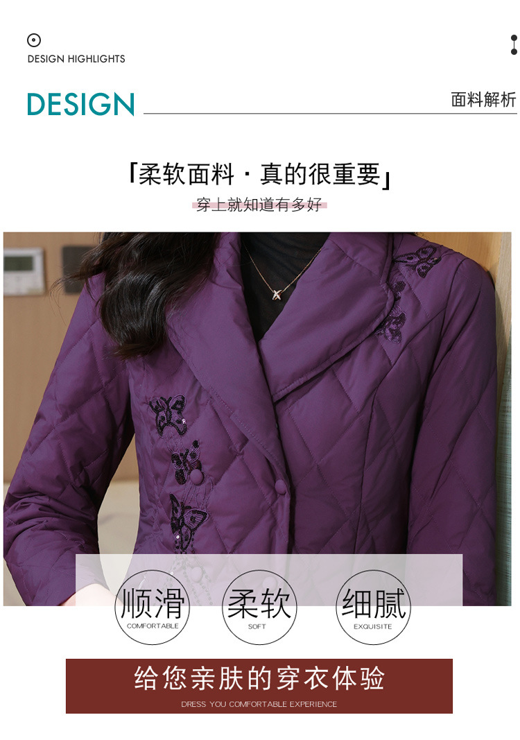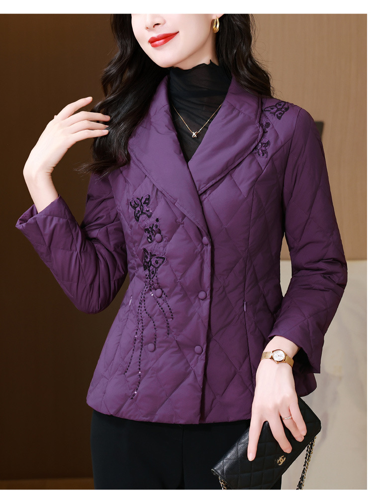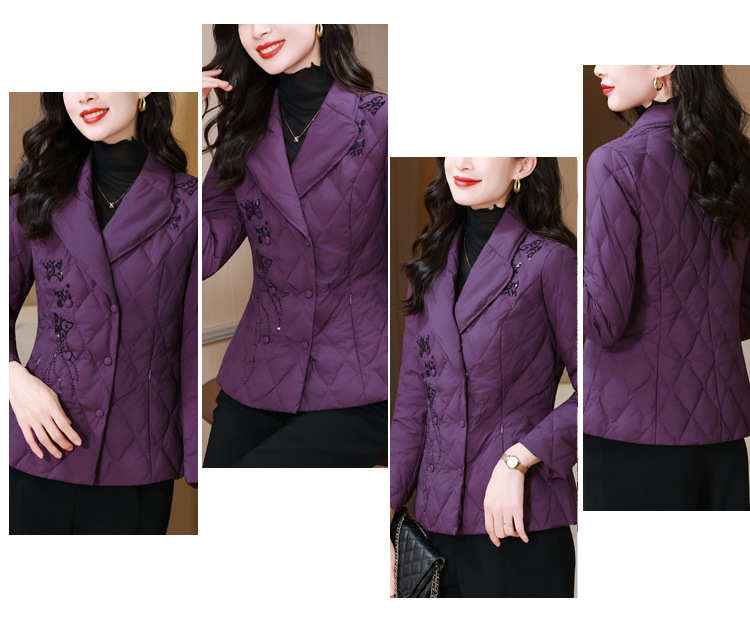 KQL B43N1661西装领刺绣双排扣羽绒棉服保暖加厚棉衣