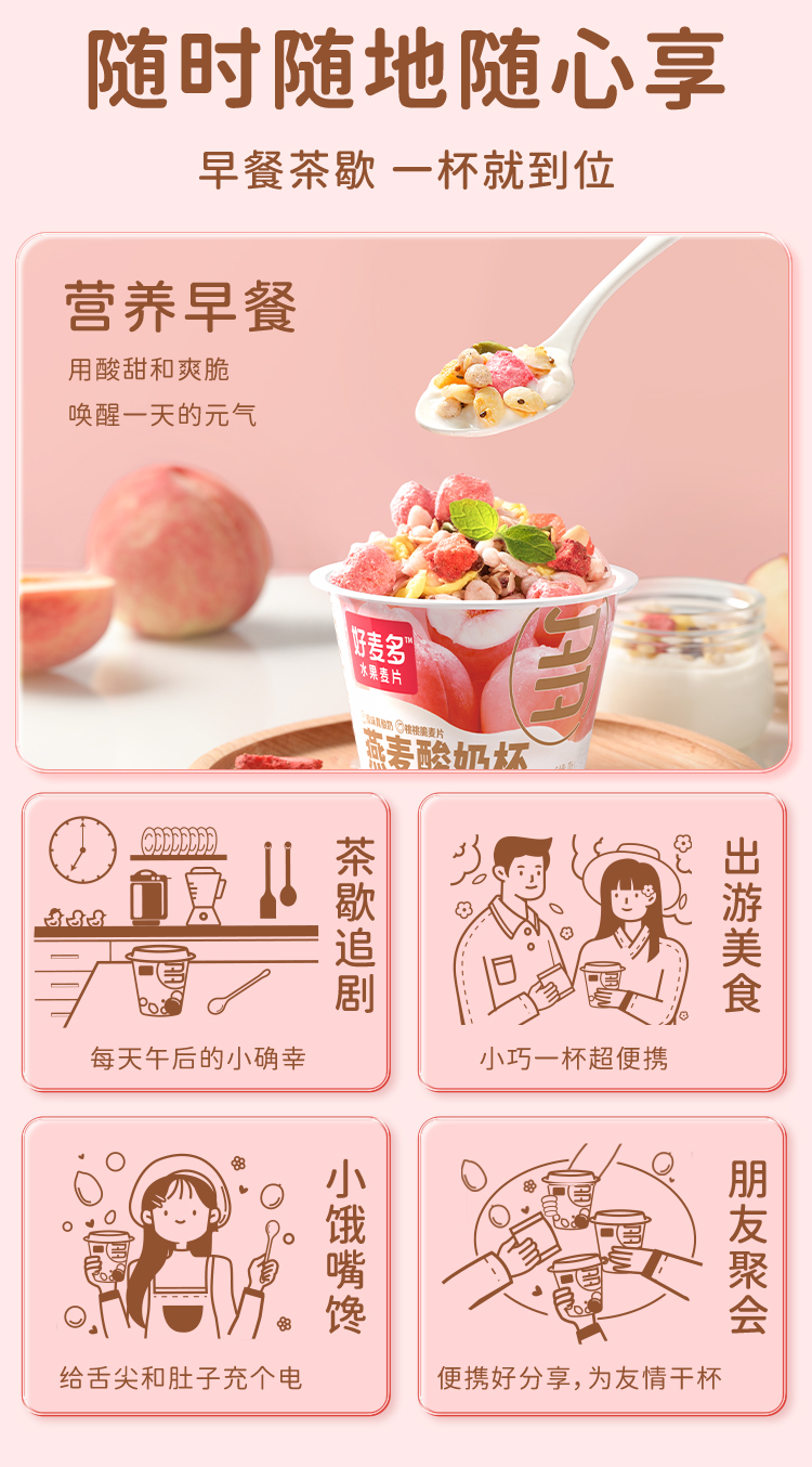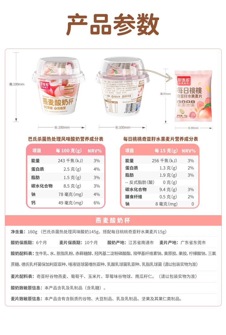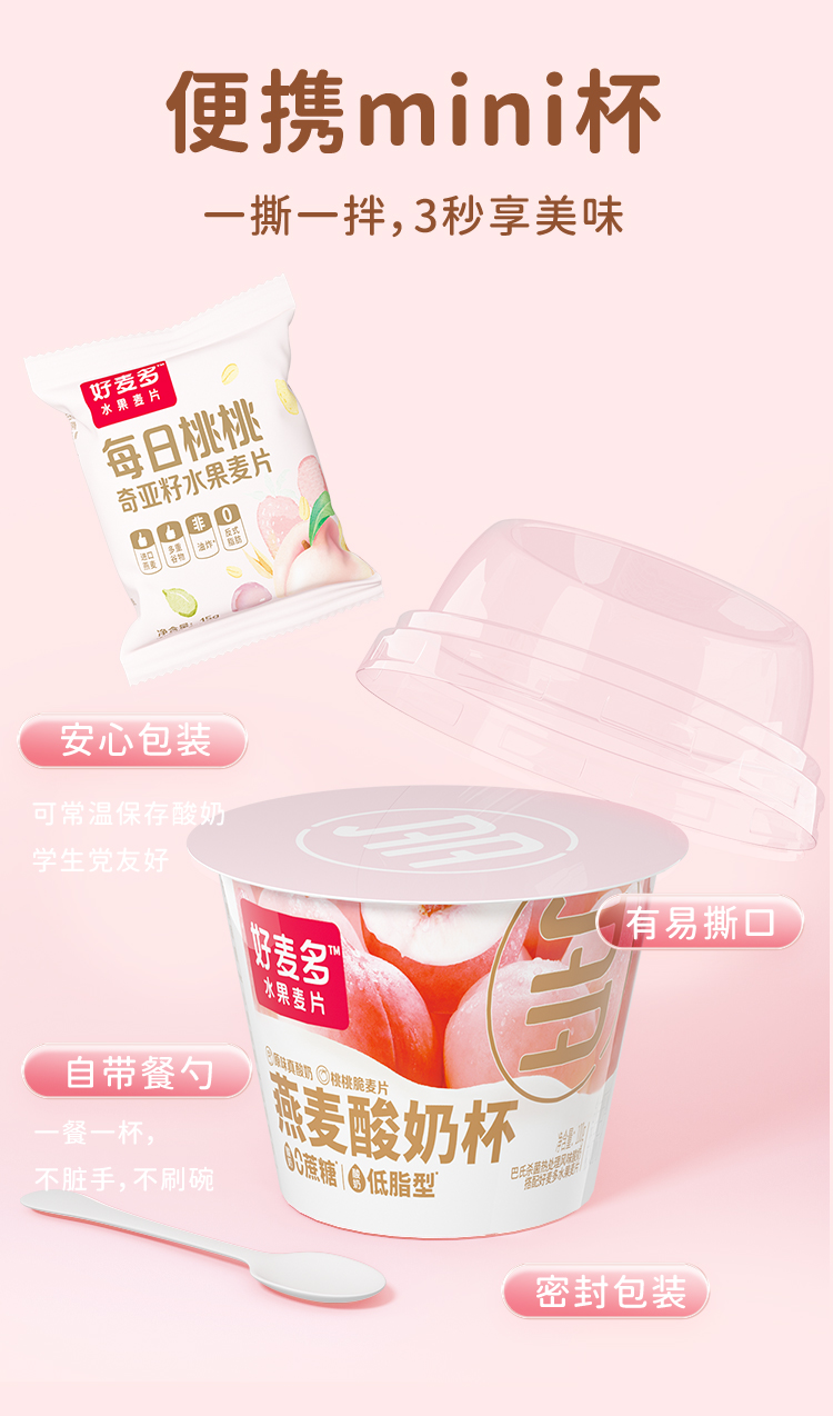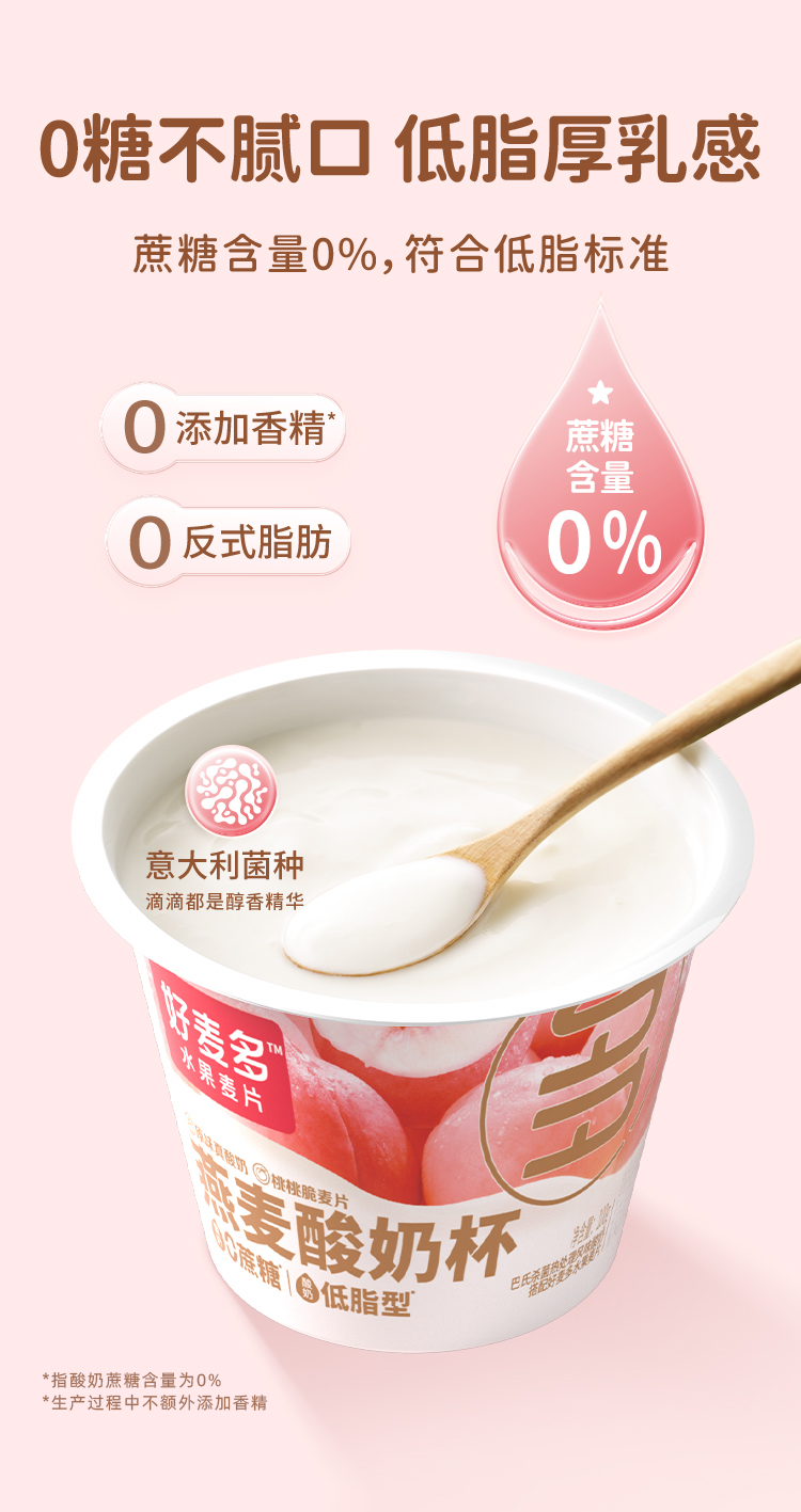 【麦麦SY】【0蔗糖低脂款】好麦多桃桃燕麦酸奶杯(6杯*165g)*1箱